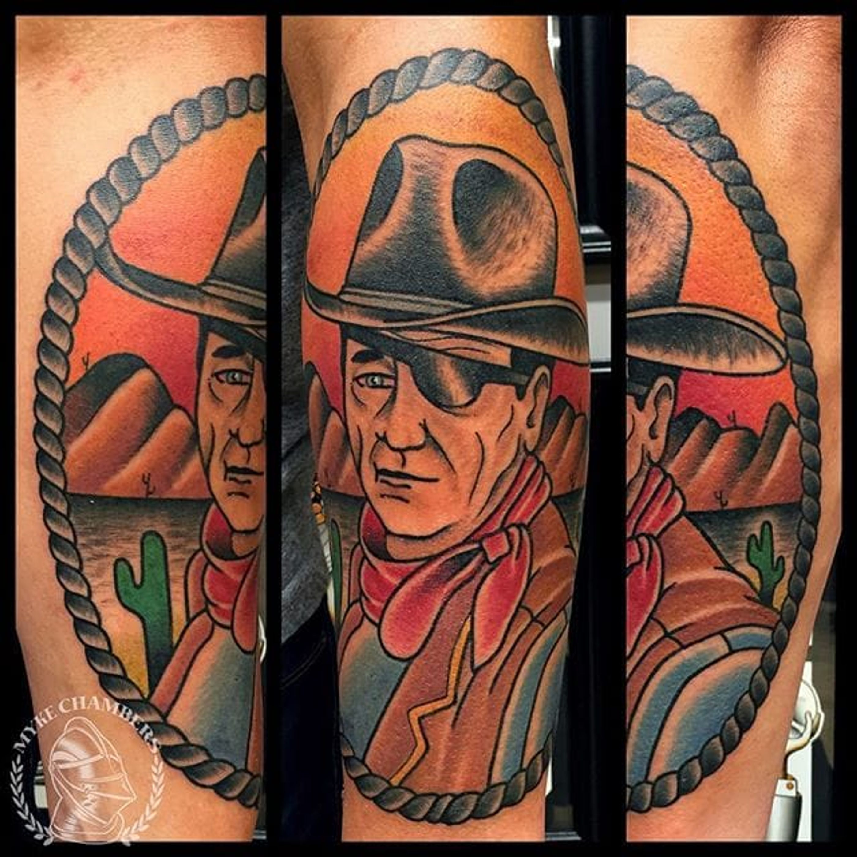 John Wayne Tattoo by Myke Chambers #johnwayne #johnwaynetattoo #wildwest #hollywood #hollywoodtattoos #movie #films #movietattoos #cowboy #MykeChambers