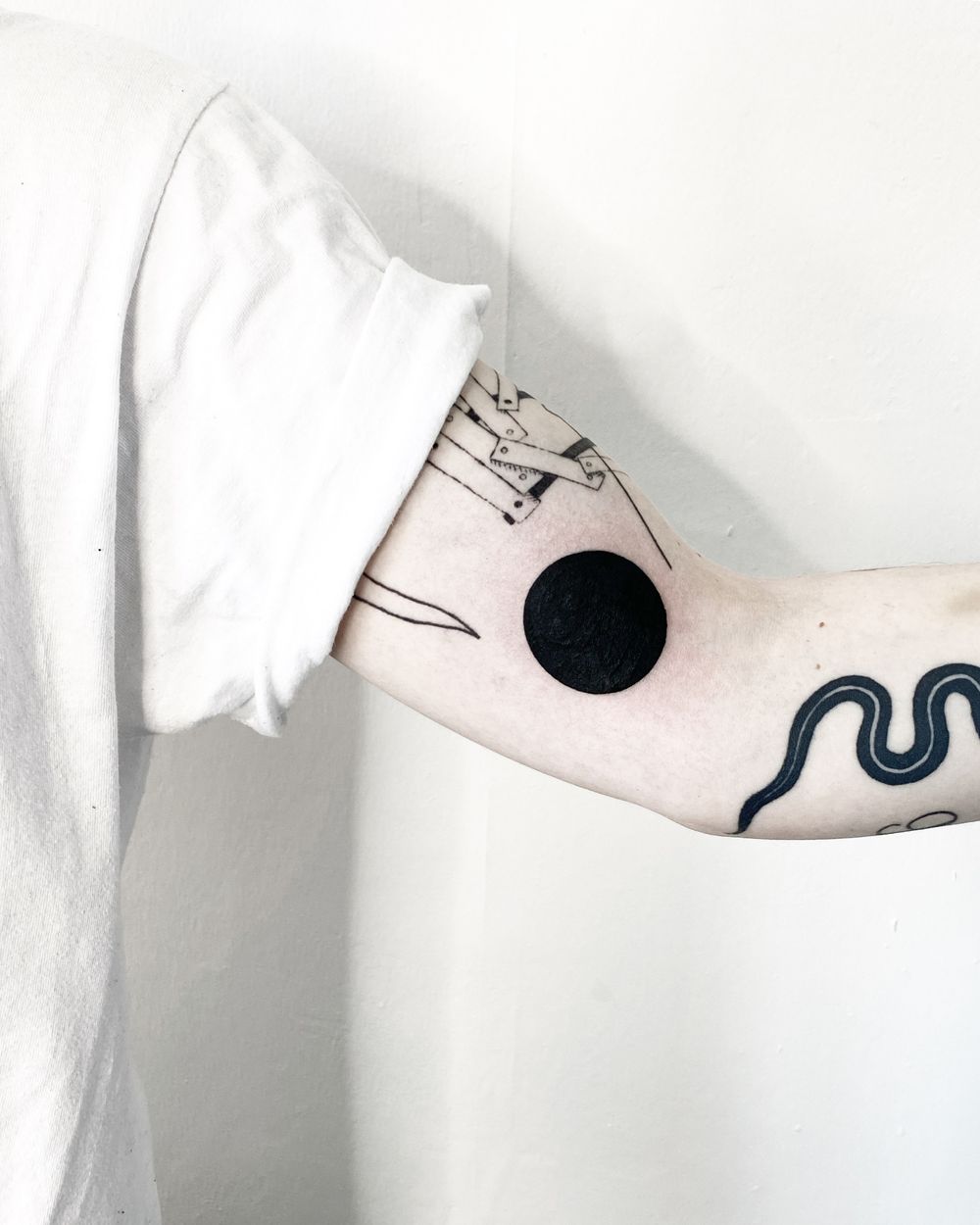Explore the mesmerizing world of blackwork with this expertly designed circle tattoo by Malvina Maria Wisniewska.