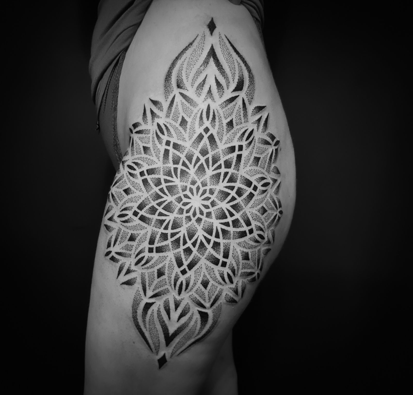 Mandala dotwork #hiptattoo #mandala #dotwork #mandaladotwork #tattooedwomen #girlytattoo