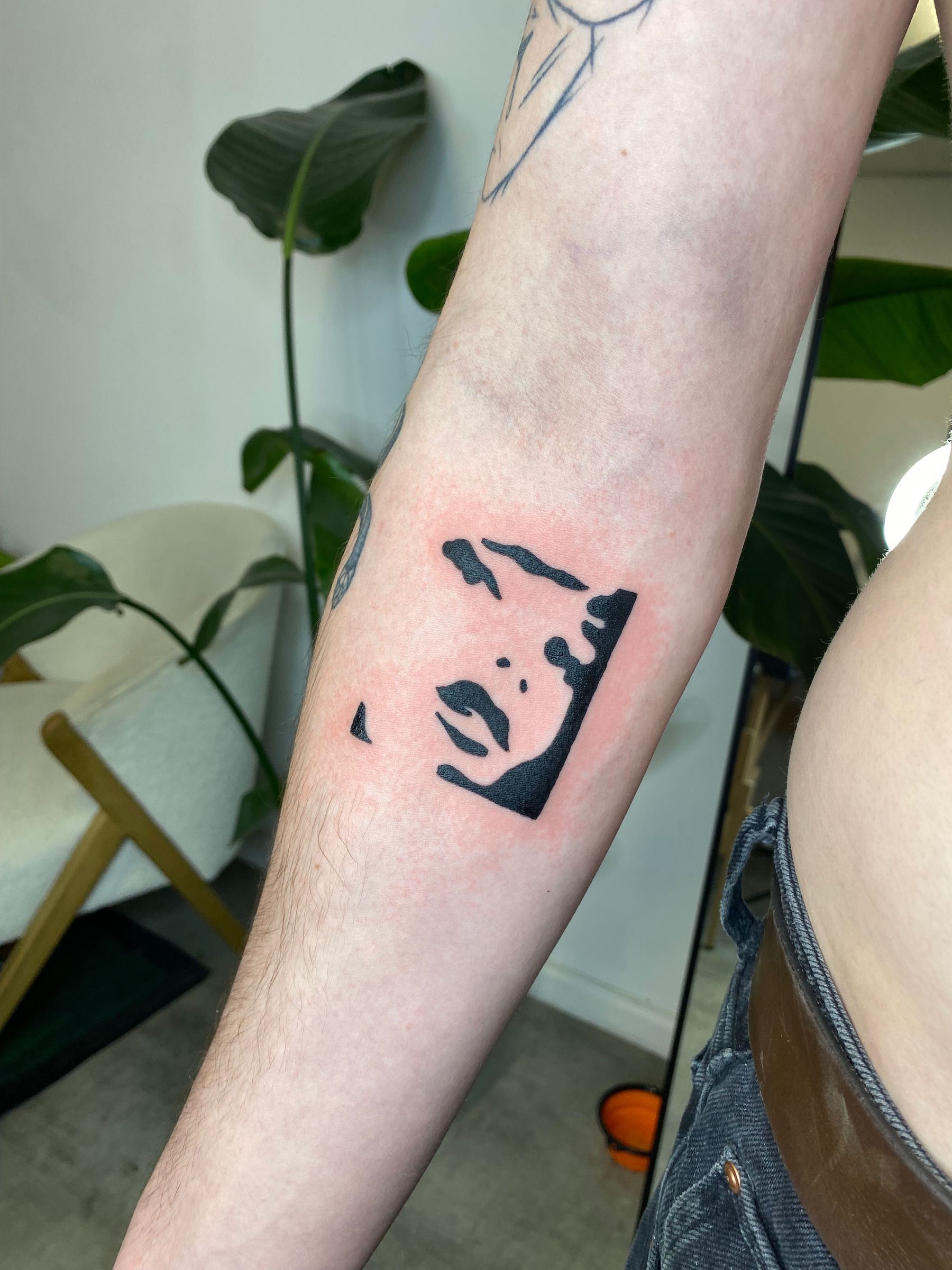 Explore the depths of art with this blackwork tattoo by Charlie Macarthur, featuring a unique abstract negative motif.