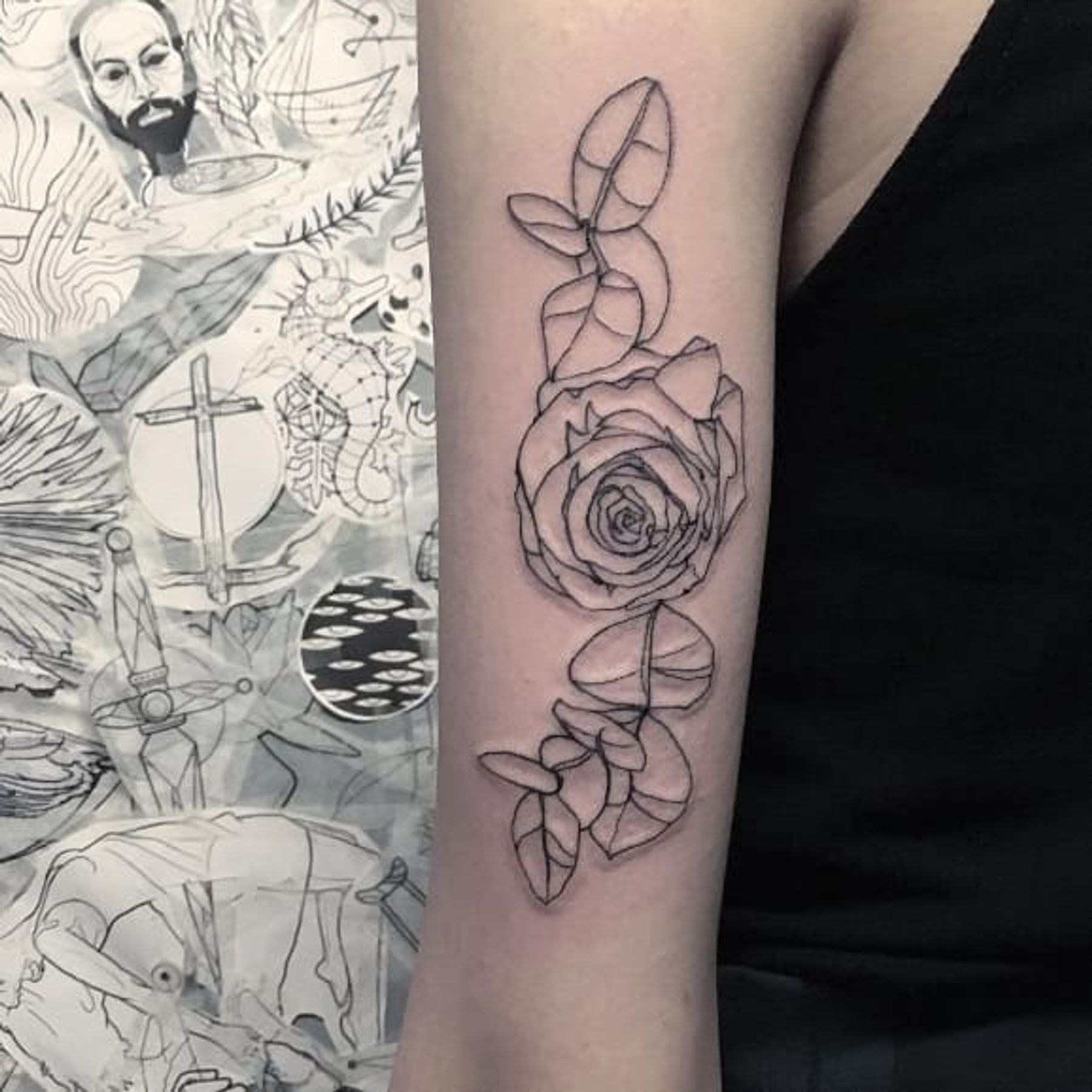Linework roses tattoo by Pablo Puentes #PabloPuentes #linework #blackwork #abstract #roses #rose