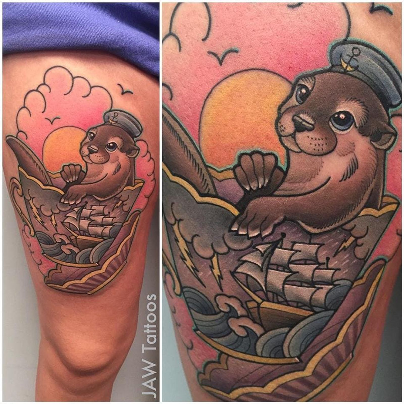 Cute tattoo #JessicaAnnWhite #otter #teacup #ship #neotraditional #illustrative #ottertattoo