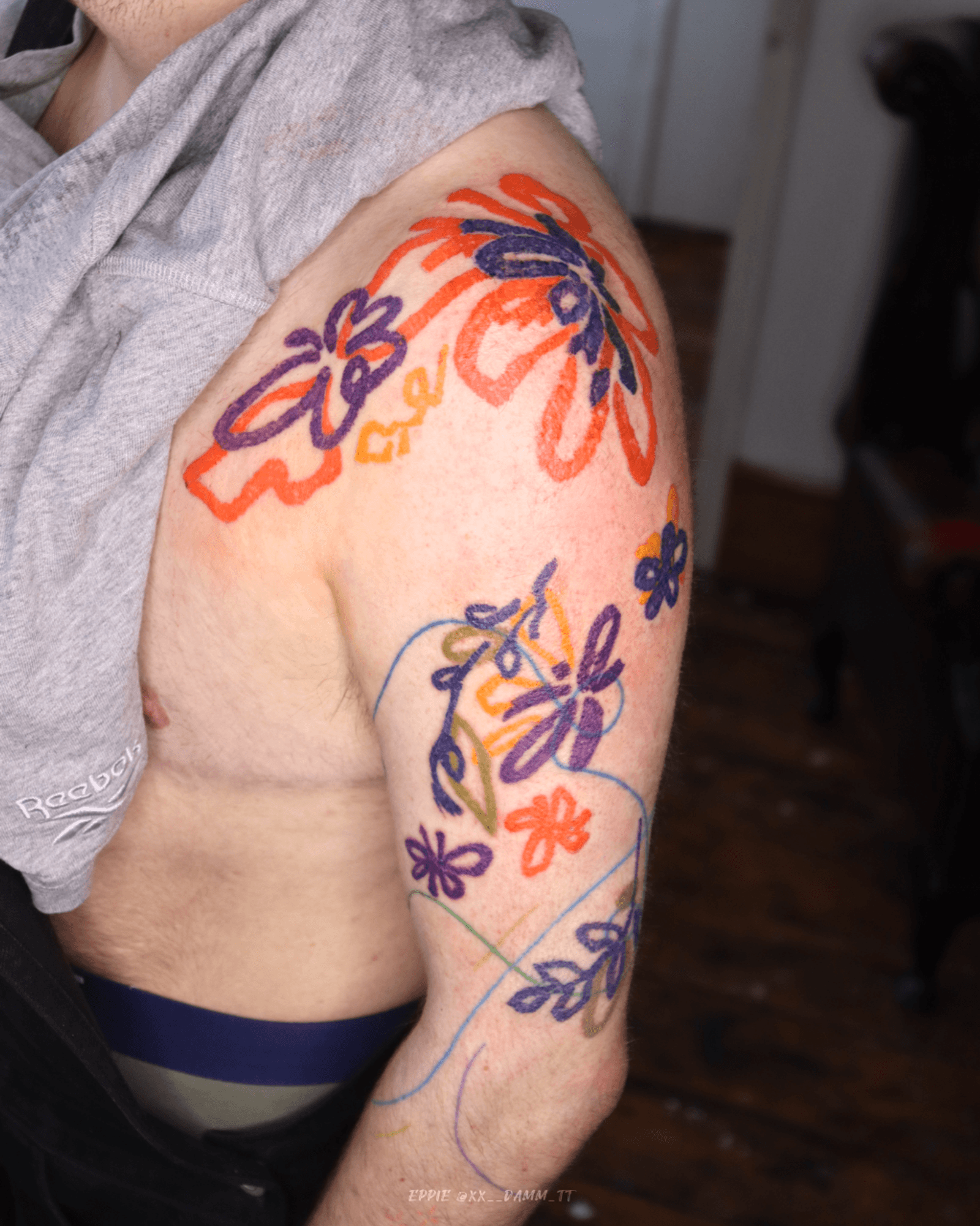 BIG WORK * abstract flowers / watercolour / oilpastel drawing