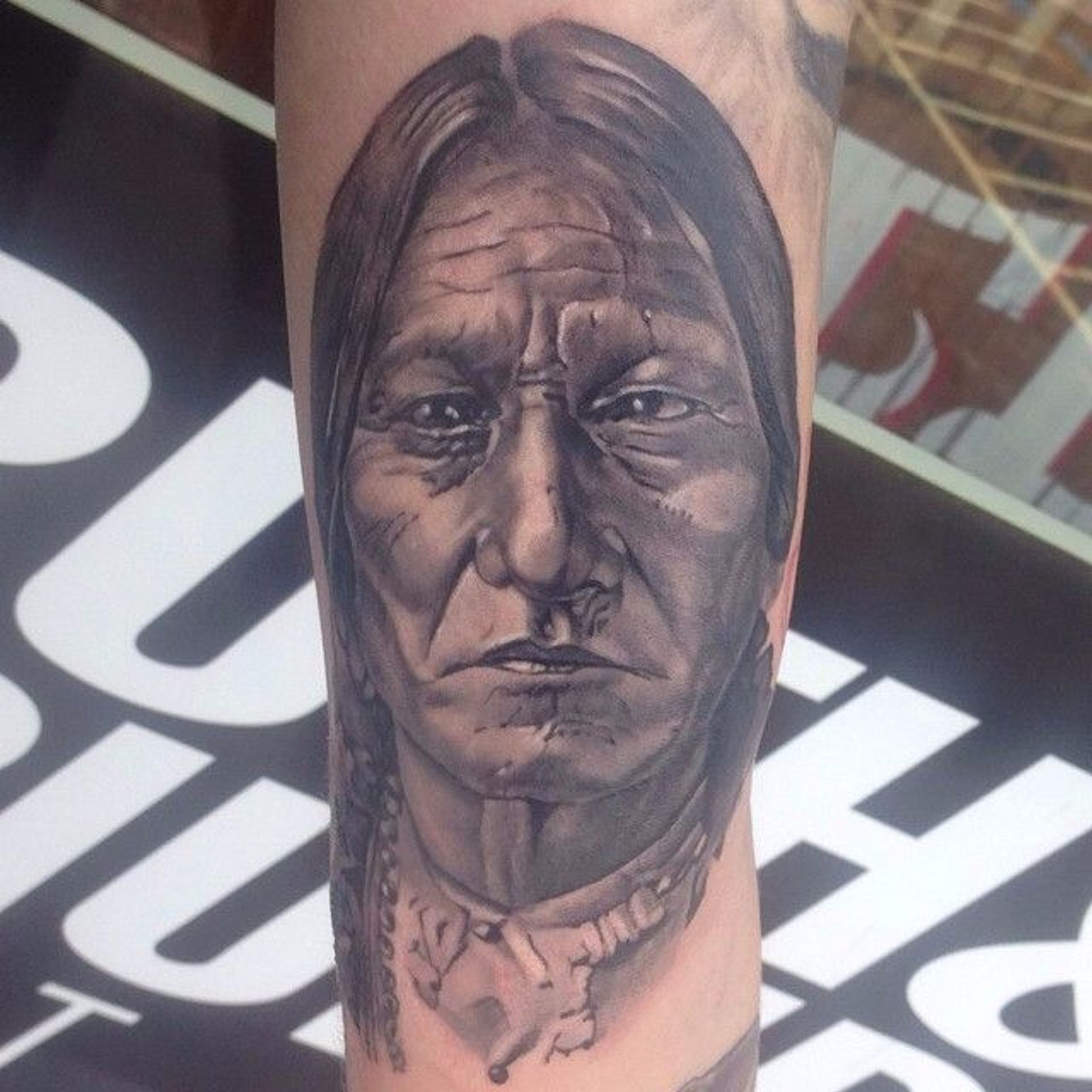 Sitting Bull Tattoo by Daniil Narayev #SittingBull #NativeAmerican #Portrait #DanielNarayev