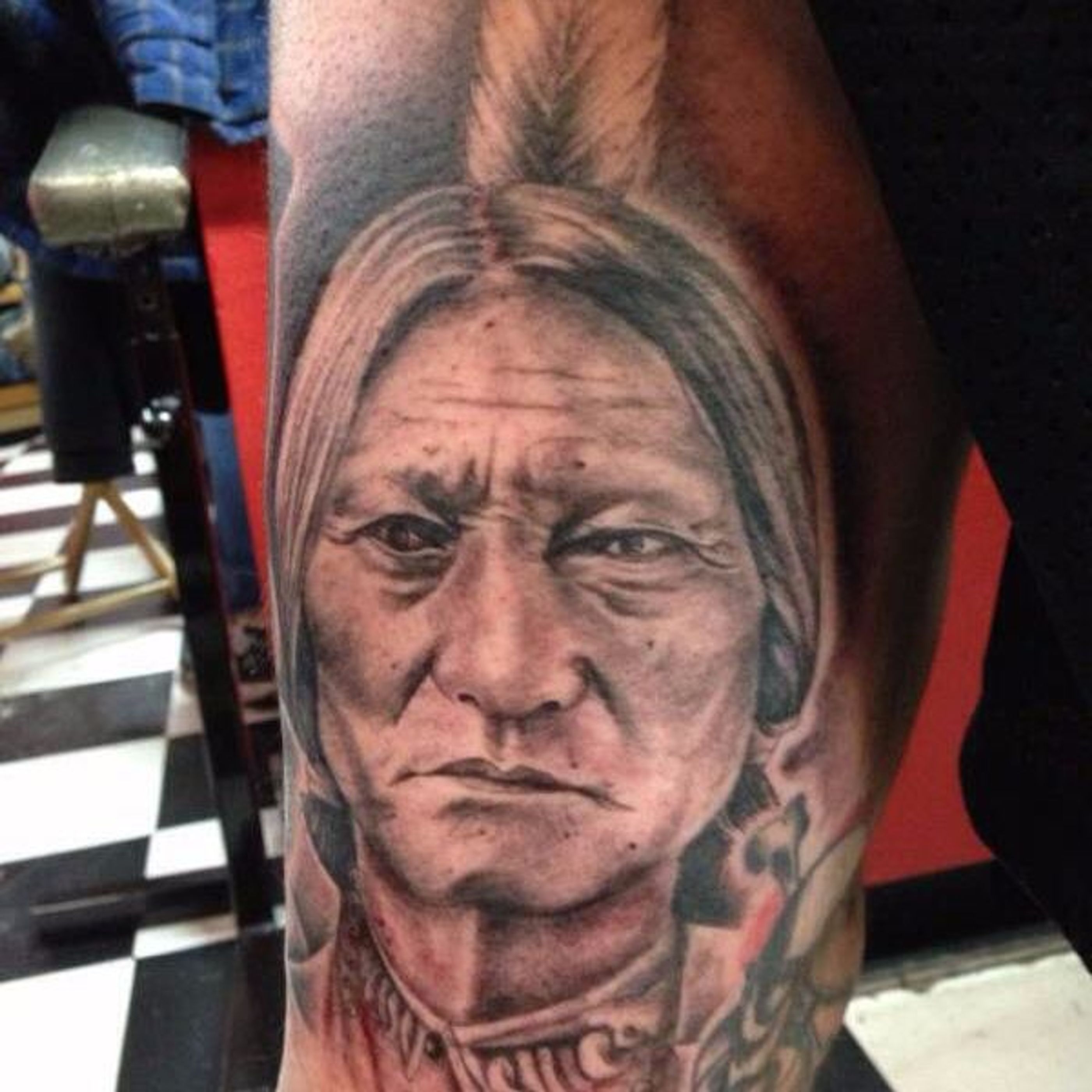 Sitting Bull Tattoo by Aaron Romo #SittingBull #NativeAmerican #Portrait #AaronRomo