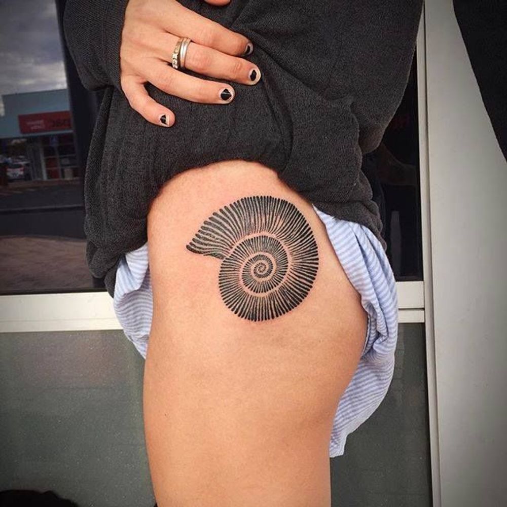 Ammonite tattoo by Miss Jade #ammonite #MissJade #blackwork #ammonitetattoo