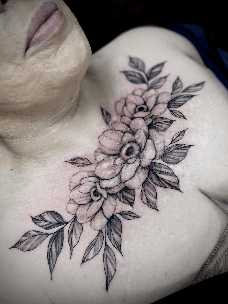 Floral chest piece to cover a few little scars
