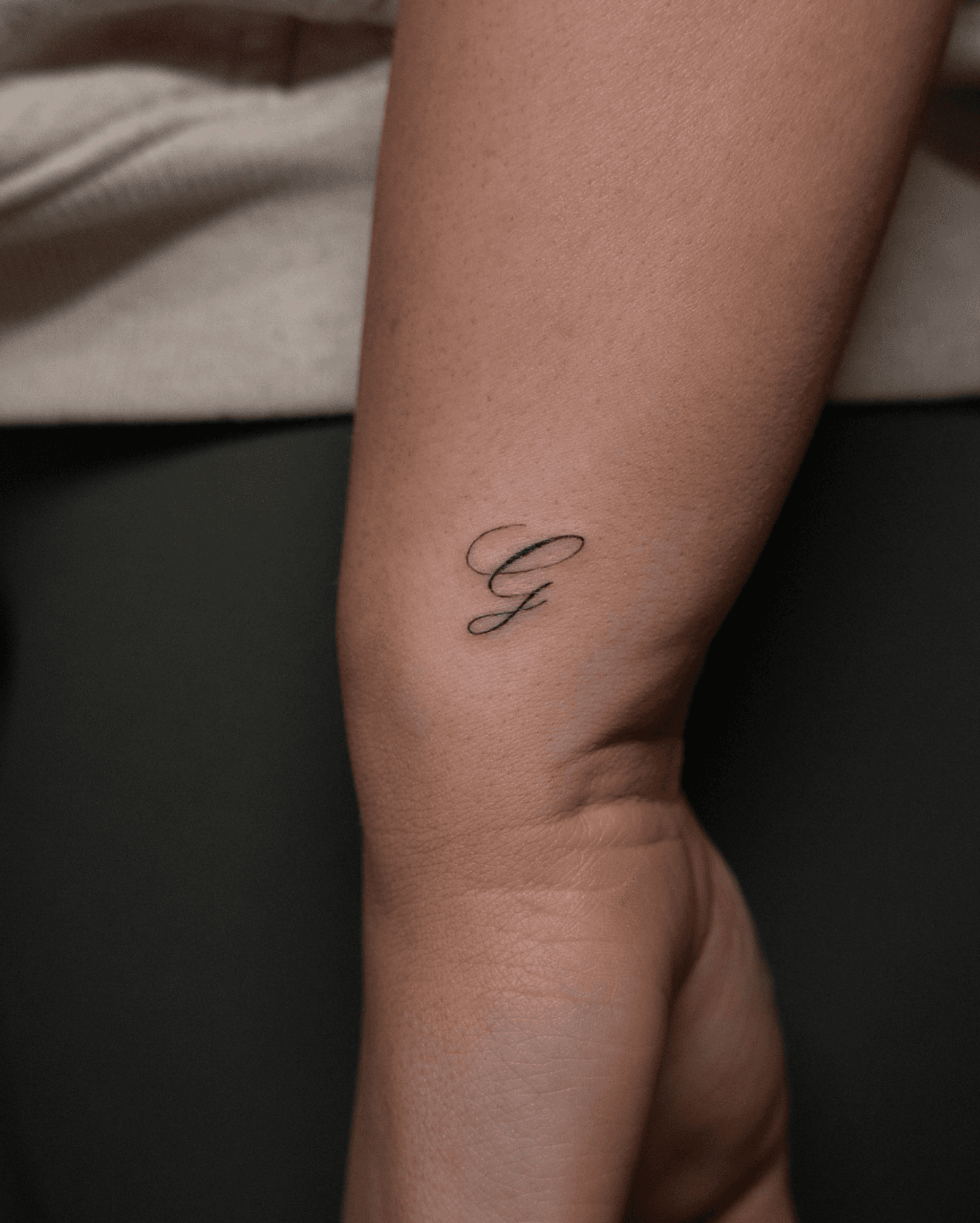 A simple cursive letter 'G'. The style is minimalistic, using fine lines, and elegant. It expresses a sense of personalized and intimate style.