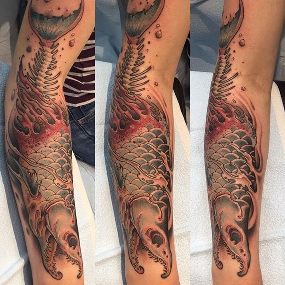 Dead Fish Tattoo by Zach Black #deadfish #deadfishtattoo #neotraditional #neotraditionaltattoo #japanese #japanesetattoo #gruesometattoos #ZachBlack