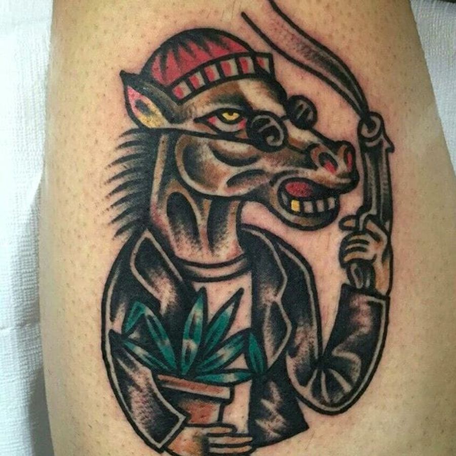 Gangster Donkey Tattoo by Jackpot Tattooer @Needles_Tattooing #JackpotTattooer #Needlestattooing #TheNeedles #Oddtattoos #Neotraditional #Oldschool #Traditional #Seoul #Korea #Donkey