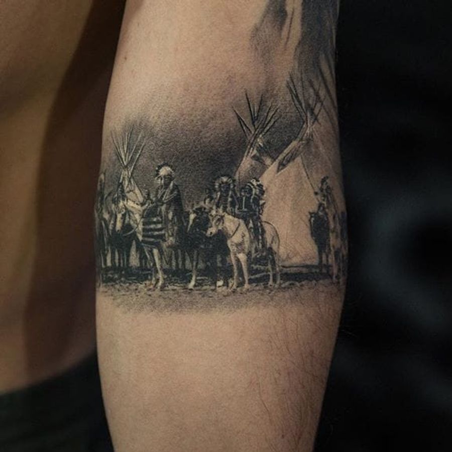 A glimpse into the American west in this photorealism by Niki Norberg. #bangers #blackandgrey #NativeAmericans #NikiNorberg #photorealism #realism
