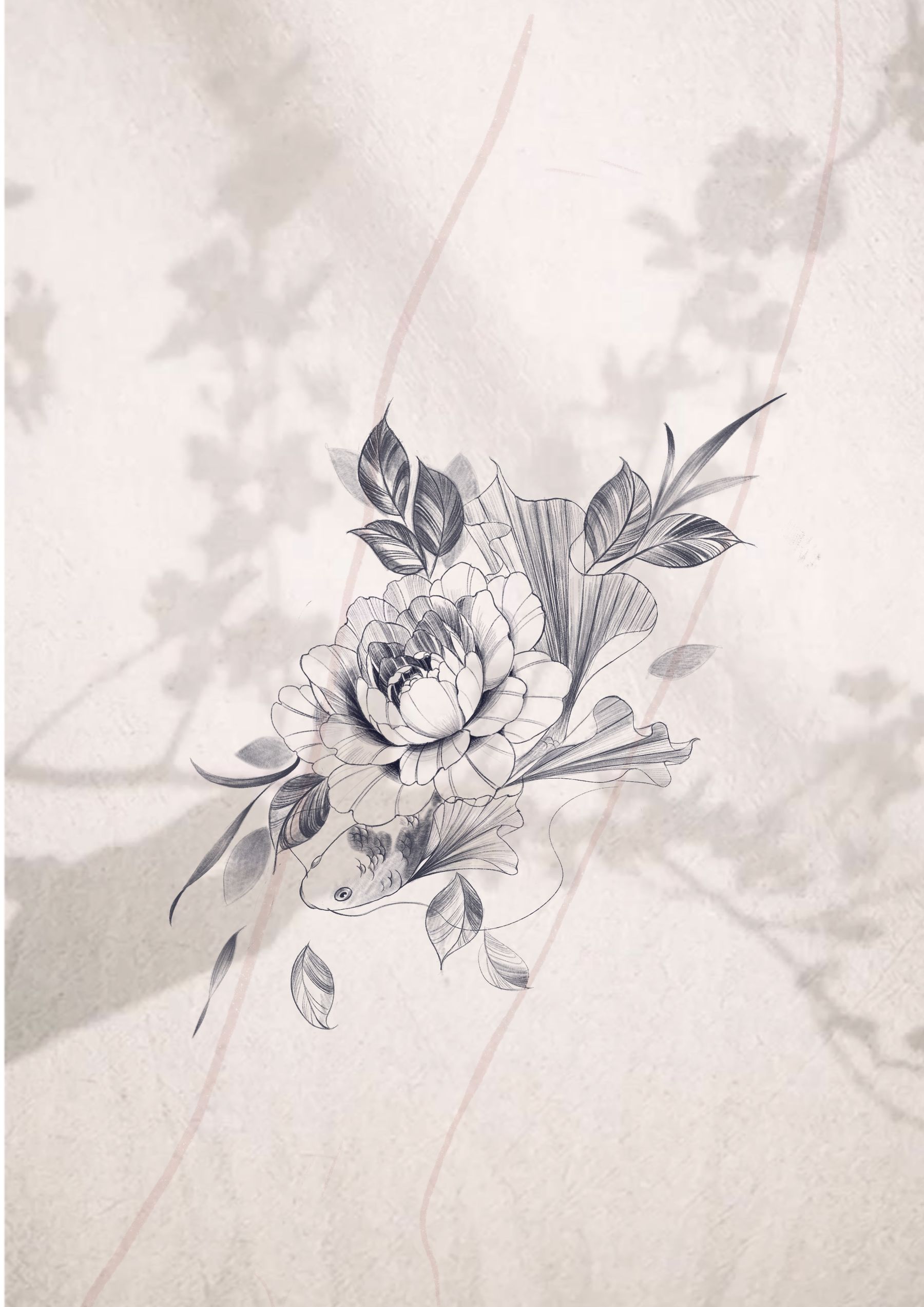 Elegant Peony and Koi Fish Flash Design