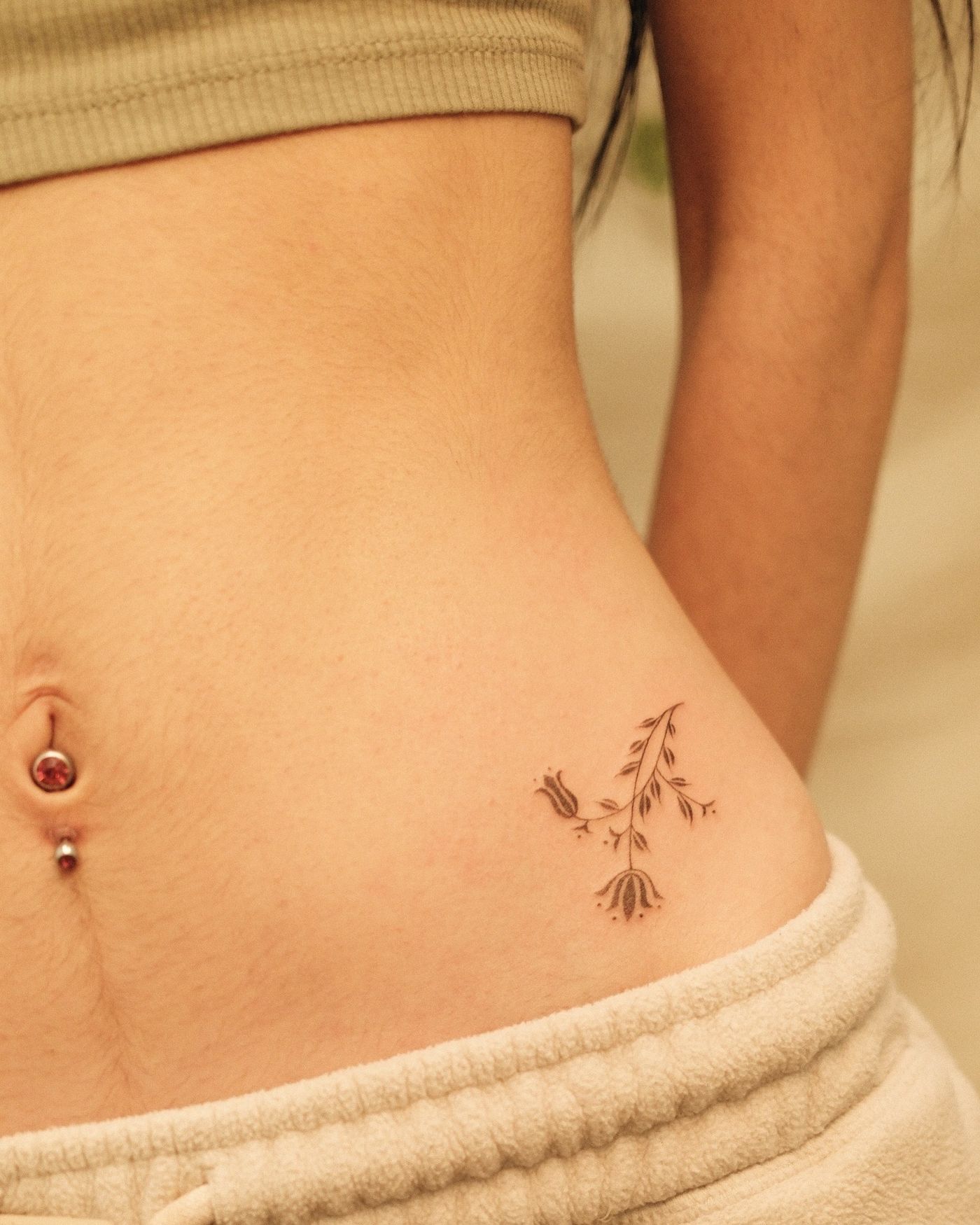 Delicate ornamental vintage flower decorating a hip bone