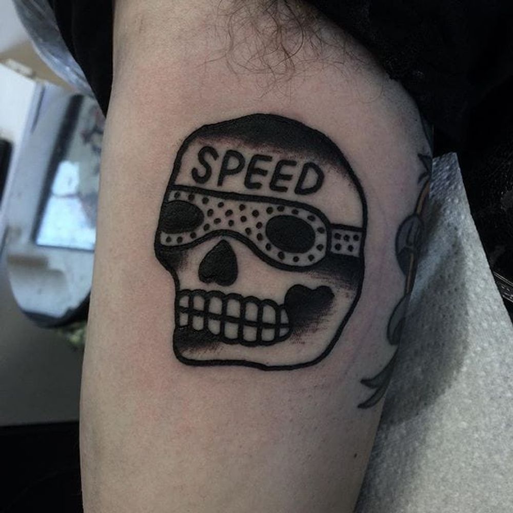 Speed Skull Tattoo by Hudson Tattoo #speedskull #speedskulltattoos #blackworkskull #skulltattoo #skulltattoos #HudsonTattoo