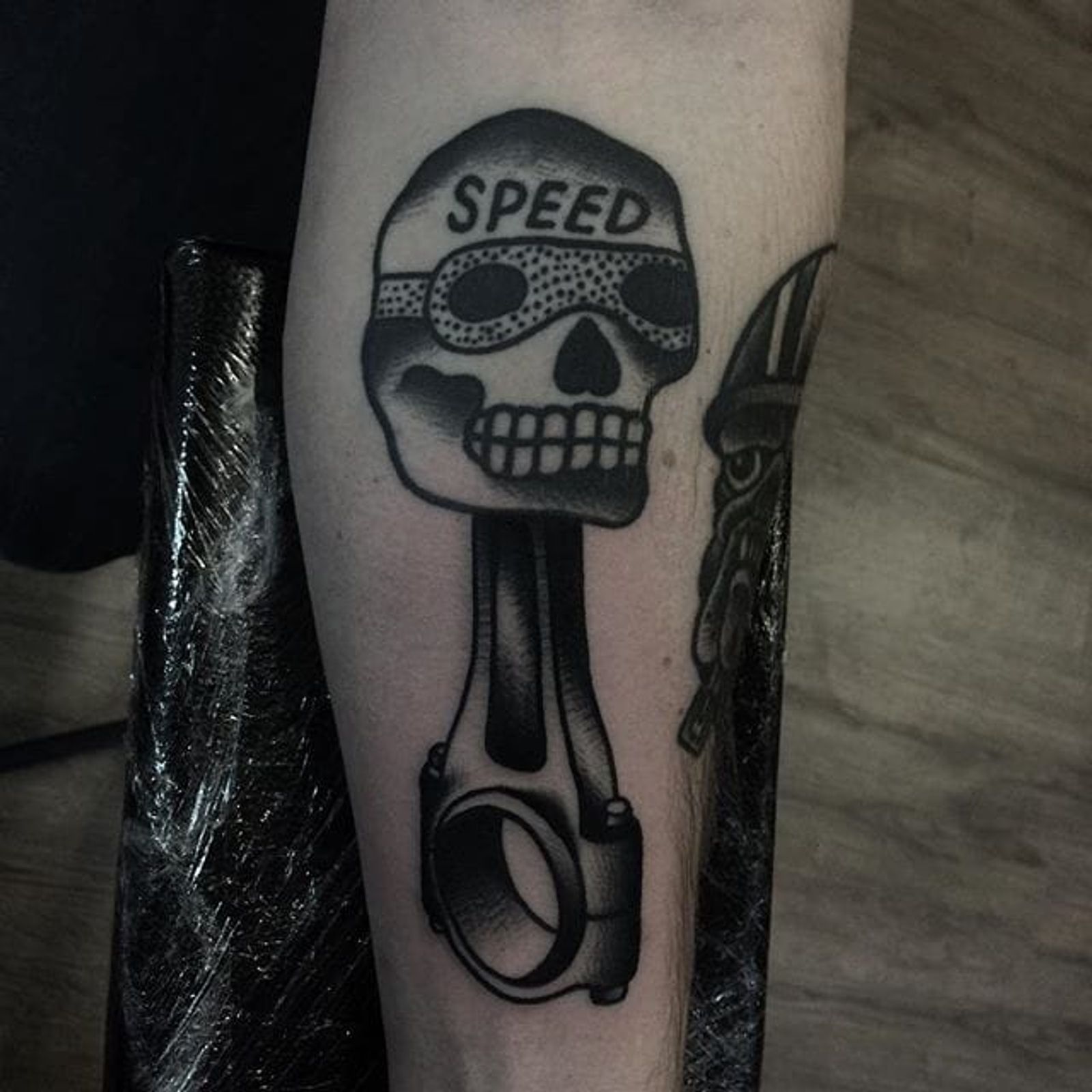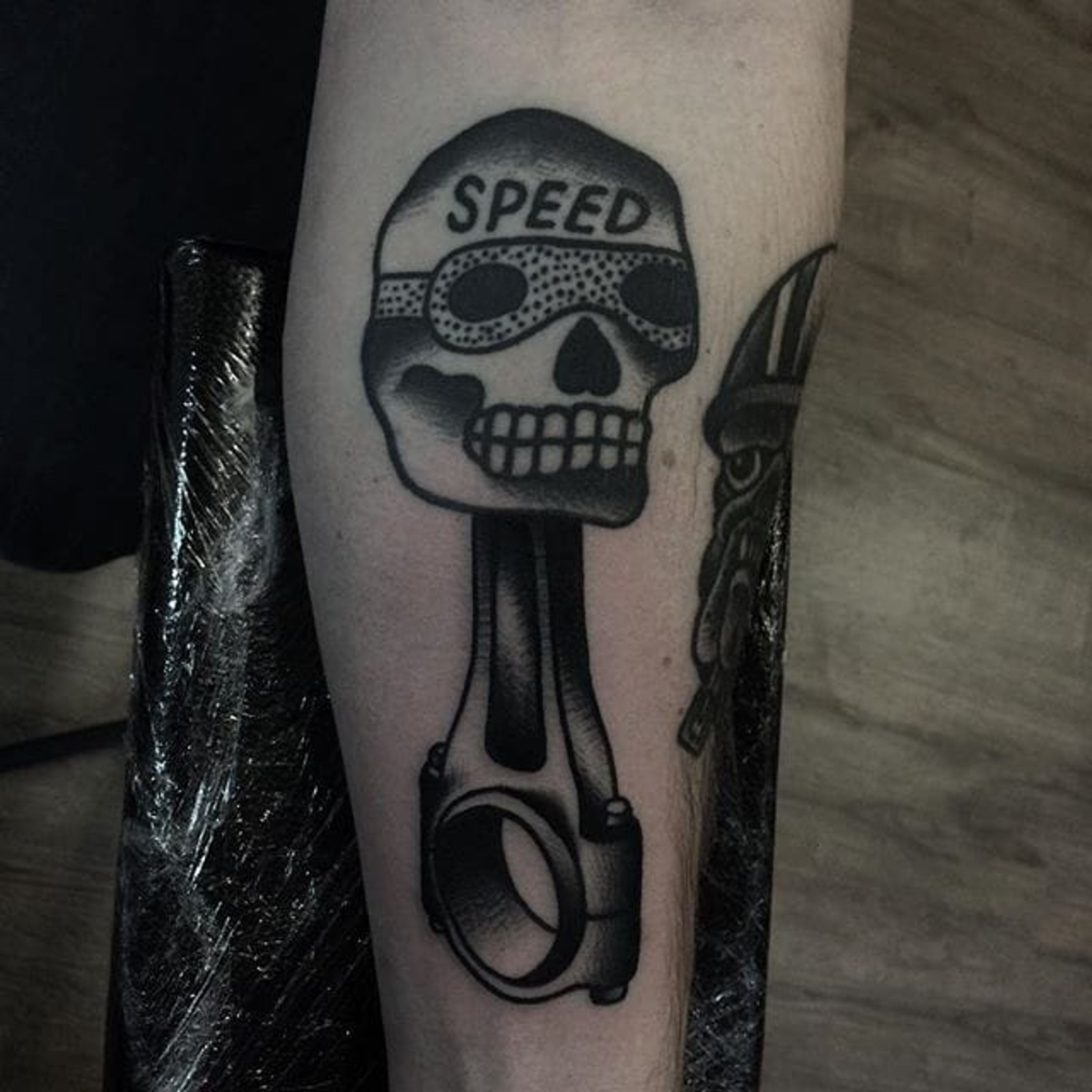Speed Skull Tattoo by Hudson Tattoo #speedskull #speedskulltattoos #blackworkskull #skulltattoo #skulltattoos #HudsonTattoo