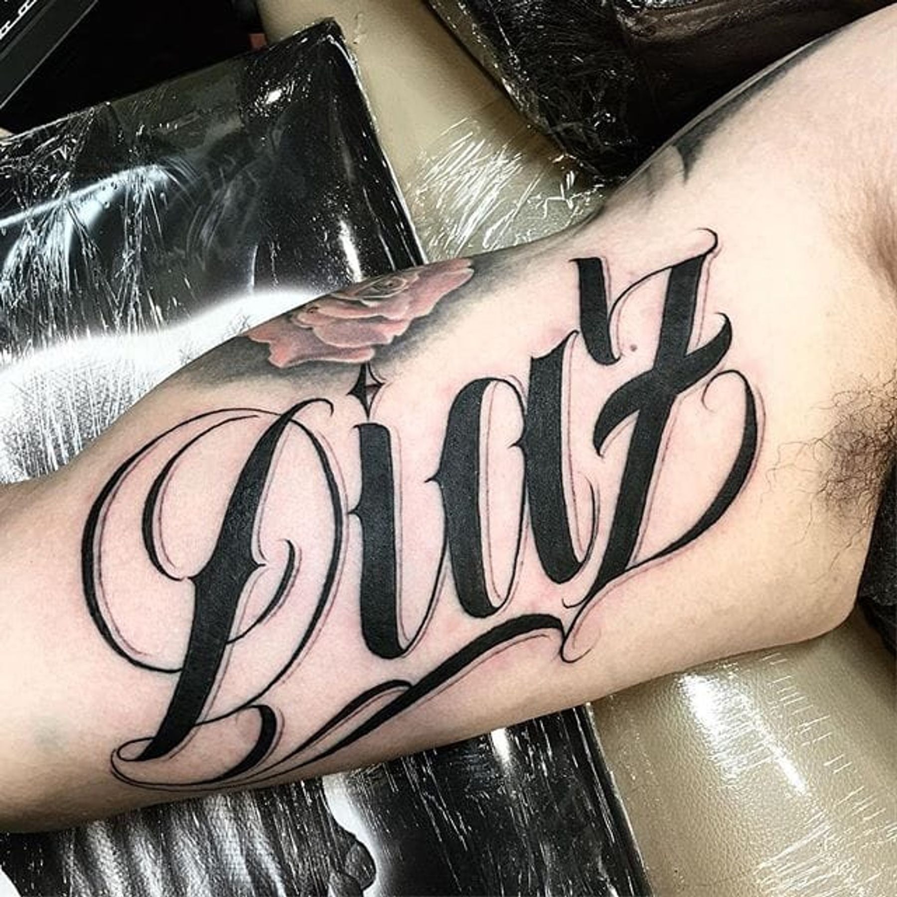 Diaz Tattoo by Saul Lira #script #scripttattoo #lettering #letteringtattoo #letteringtattoos #customlettering #scriptartist #LAtattoos #SaulLira