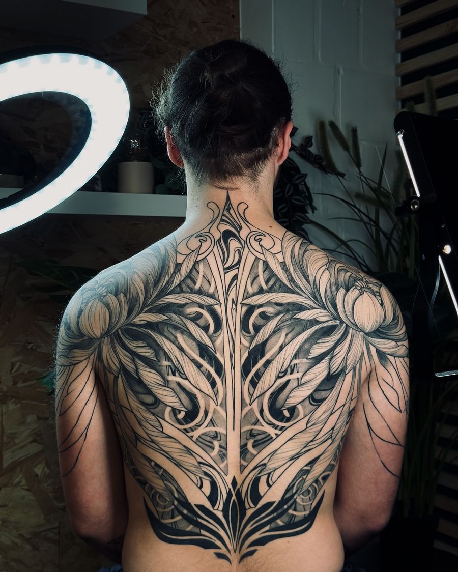 J’ai bossé sur ce tatouage de dos pendant deux jours non-stop à la convention @epinaltattooshow de 2023. Un énorme big up à mon client qui a assuré comme un chef, il a tenu le coup jusqu’au bout sans broncher ! Et devinez quoi ? On a raflé la 3e place au concours ‘Best of Black Work Graphique’ ! 🥉 Je vous laisse en juger par vous même ;) 1/3 #tatouage #tatouagefrance #tattoo #tattoomodel #tattooink #tattooed #tattoos #tattooart #tattooworld #ink #inktattoo #inkart #inkwork #inkgirl #ornamentaltattoo #graphictattoo #france #belgique #belgium #lille #tournai #epinal