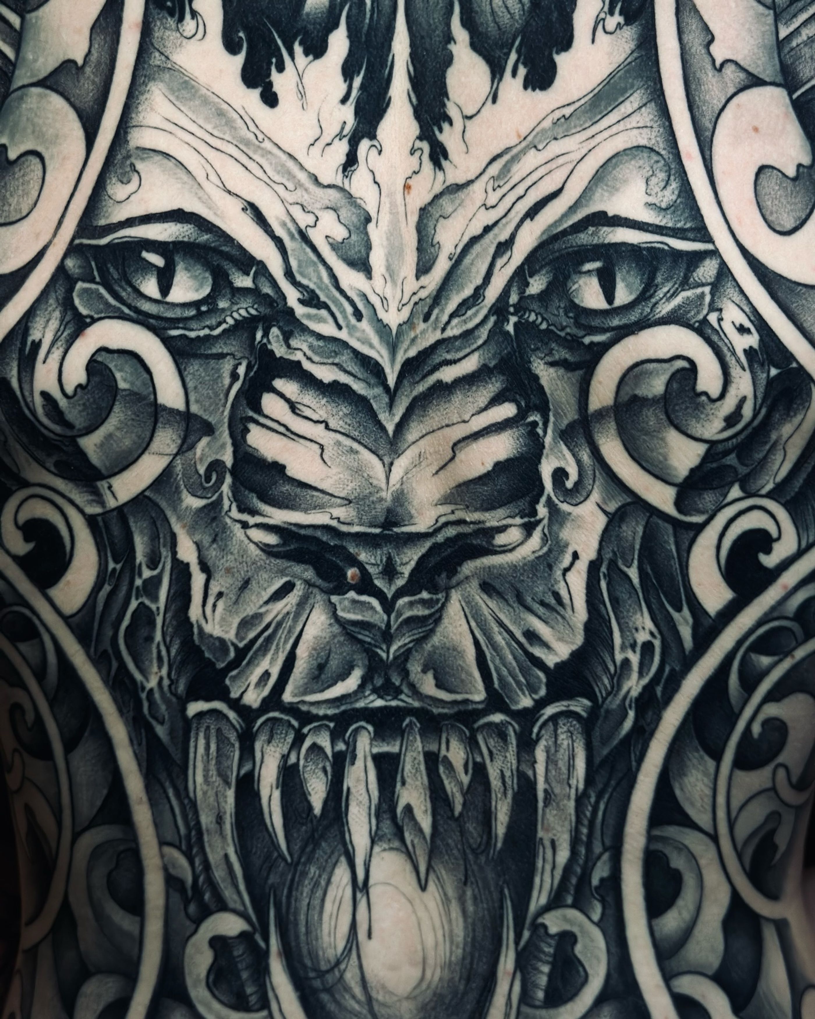 coucou tout le monde, je vous présente un projet que j’ai réalisé à la convention @thewolftattooconvention 2023 ! 🐺✨ sur un dos complet, une interprétation d’un loup-garou dans mon style. Voici la photo une fois cicatrisée.