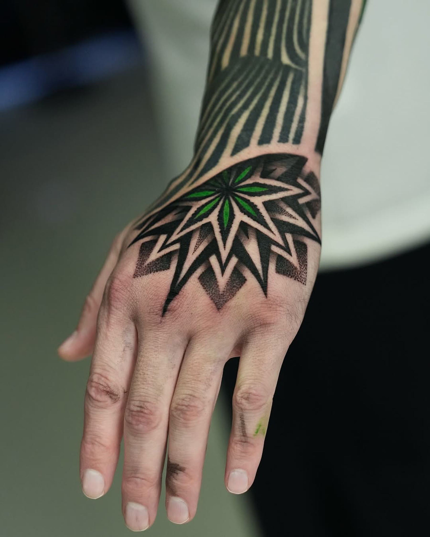 #tattooinlasvegas #ilyacascad #colorpattern #armsleevetattoo #cubetattoo #handtattoo