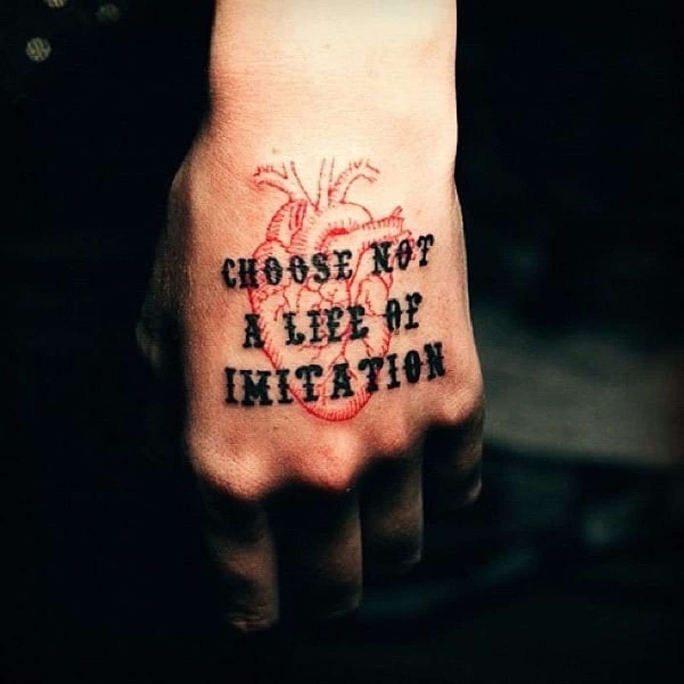 Inspirational hand tattoo. Artist unknown. #quote #inspirational #inspirationalquote #motivation #meaning #meaningful #script #sayings #heart #handtattoo