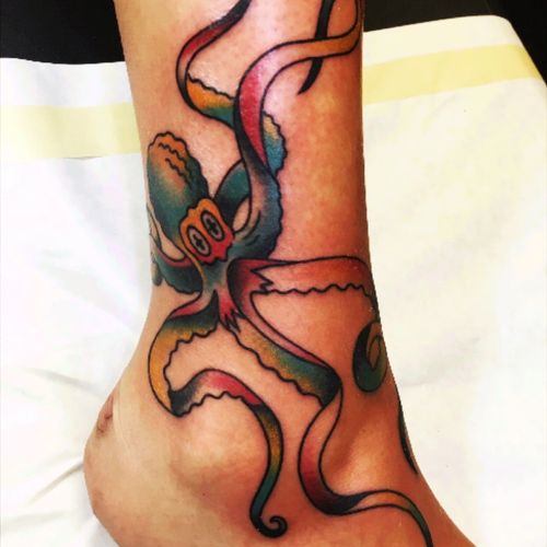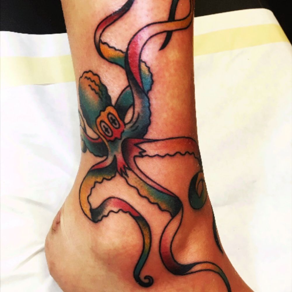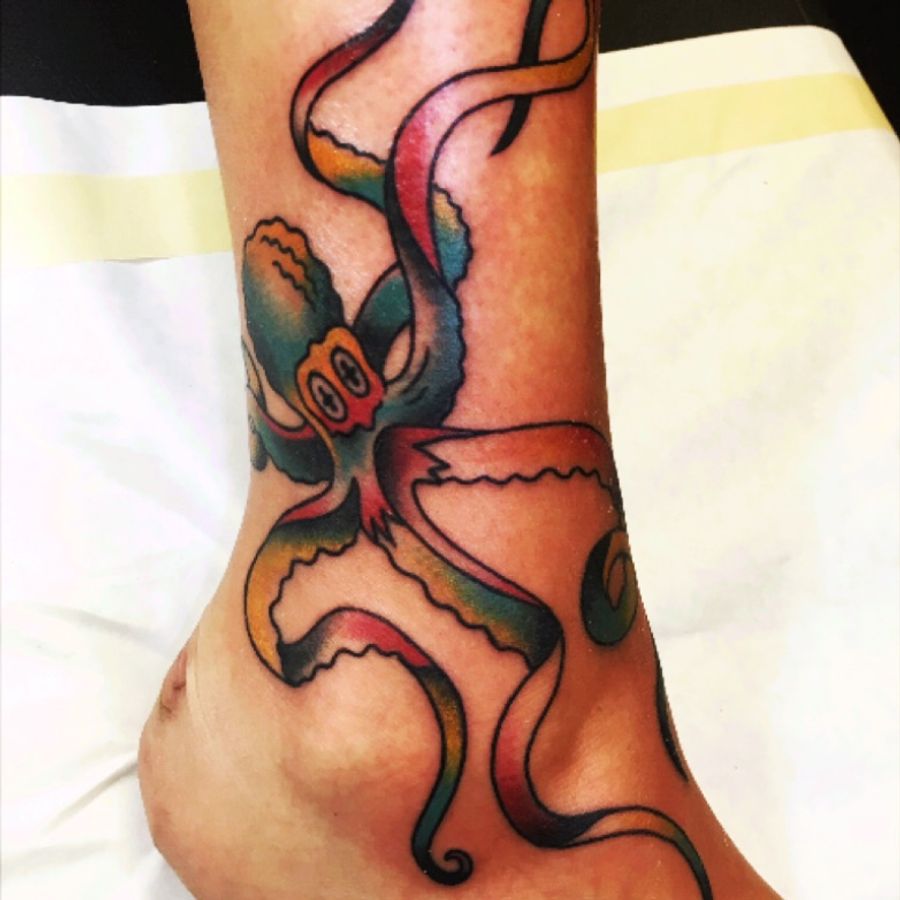 Amazing rainbow kracken done by wicked artist Sue at Old Ironside Tattoo in Hawaii!!!! #kracken #colourtattoo #oldironside #sailorjerry