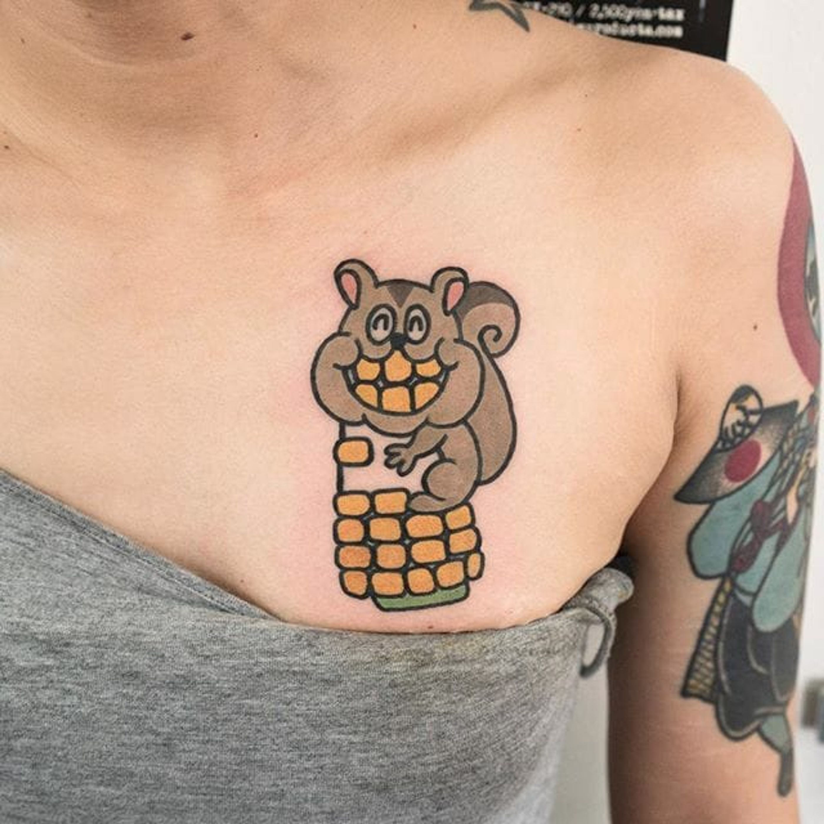 Cartoon squirrel tattoo by Hong Ji Sun. #Hongjisun #cartoon #bold #comical #funny #cute #squirrel