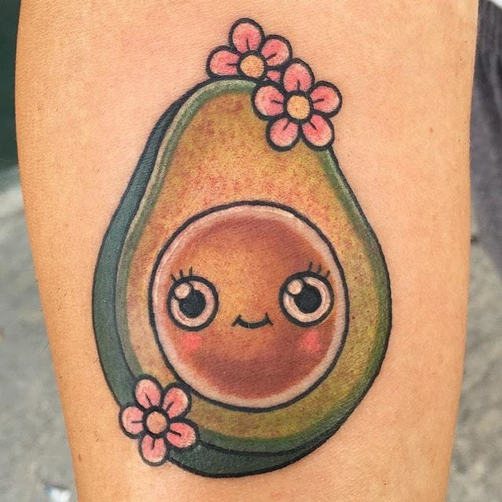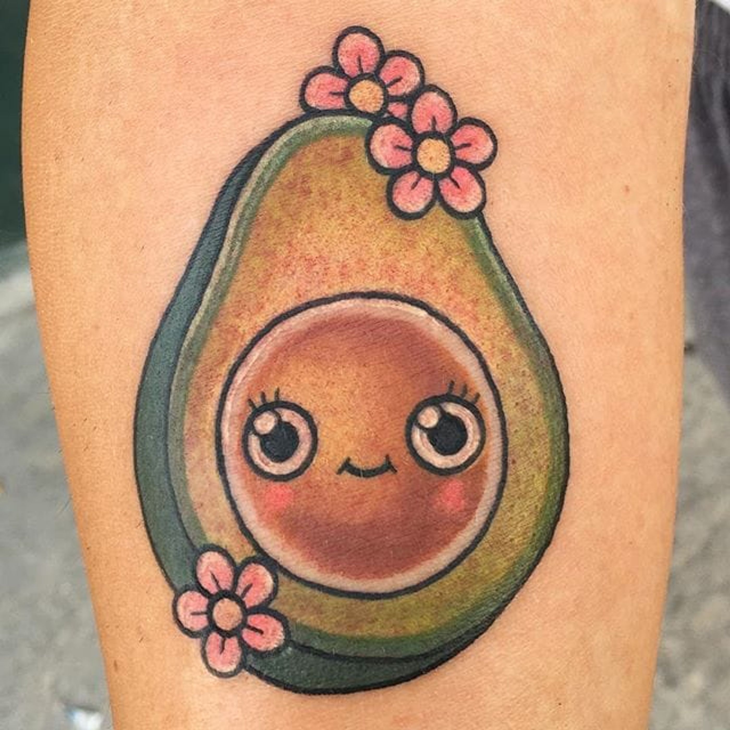 Cute halved avocado tattoo by Meri. #cute #kawaii #avocado #fruit #tattoosbymeri #Meri