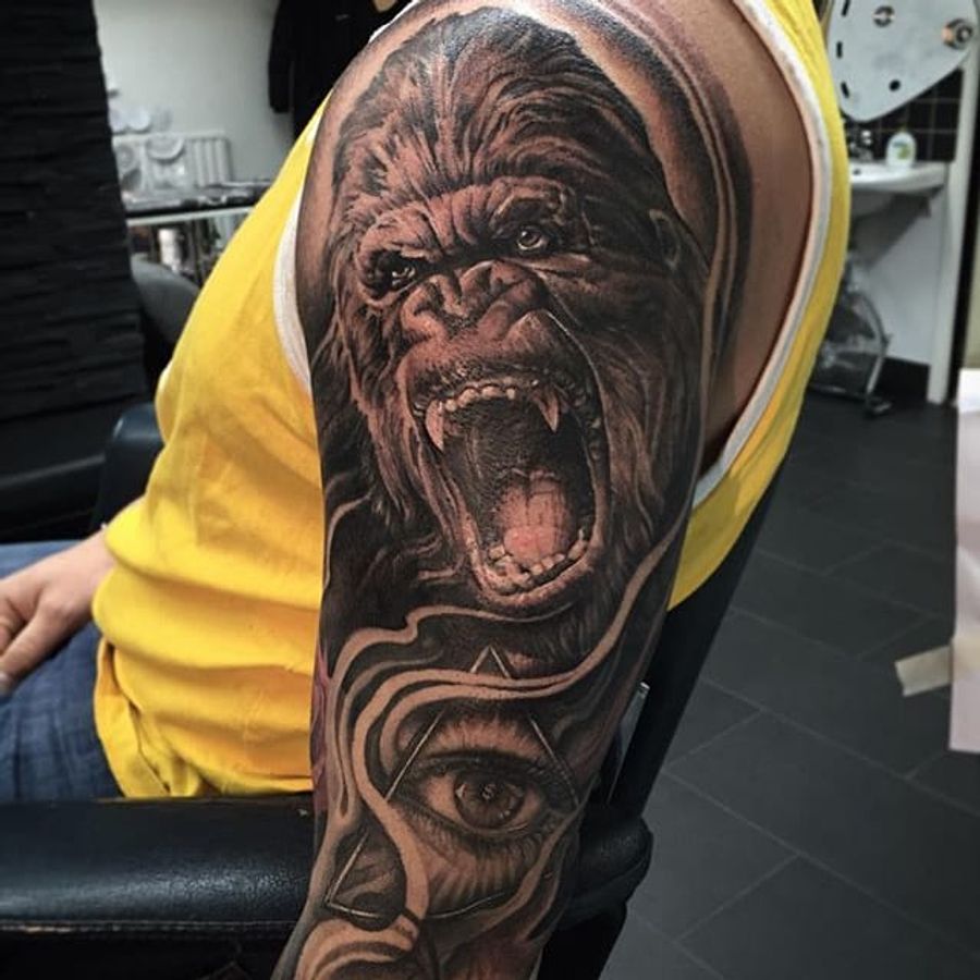 Gorilla Tattoo by Andy Blanco #gorilla #gorilltattoo #blackandgrey #blackandgreytattoo #blackandgreytattoos #realism #realismtattoo #AndyBlanco