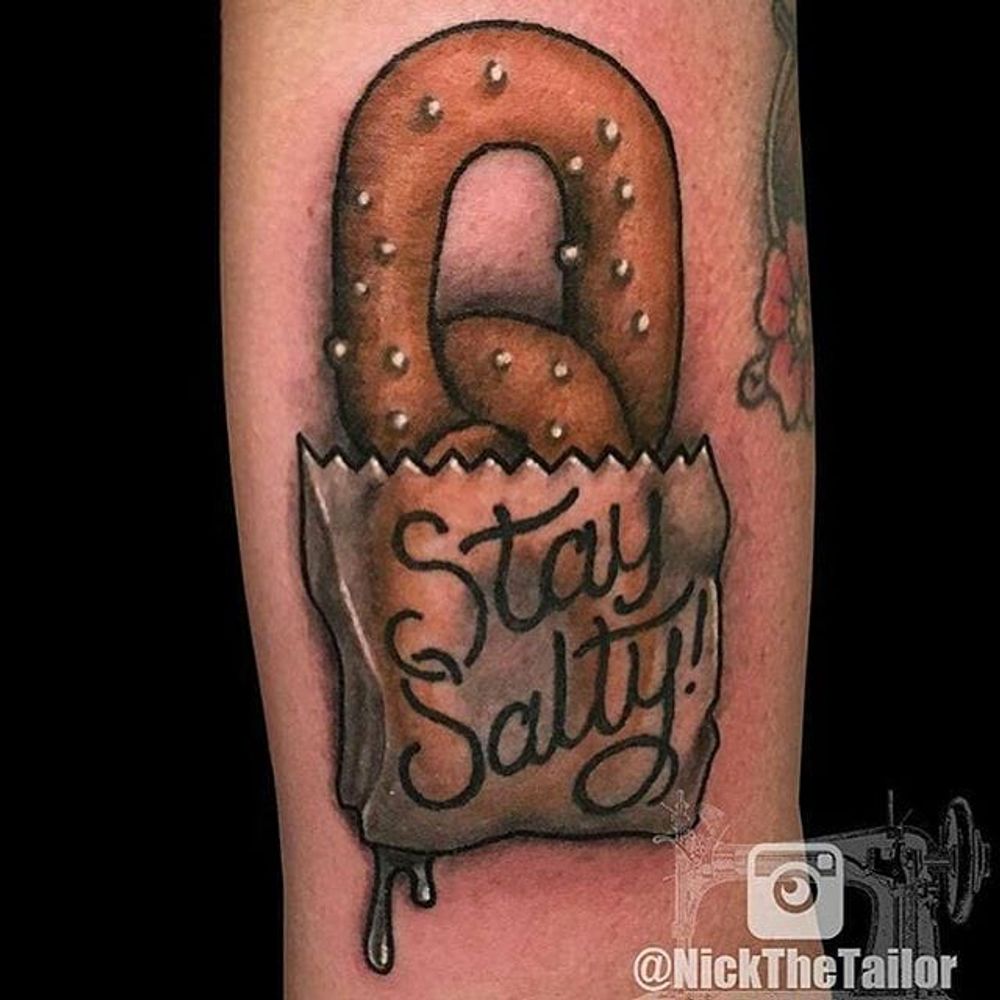 Philly pretzel tattoo by Nick Soloman. #Philly #Philadelphia #pretzel #phillypretzel #newschool #NickSoloman