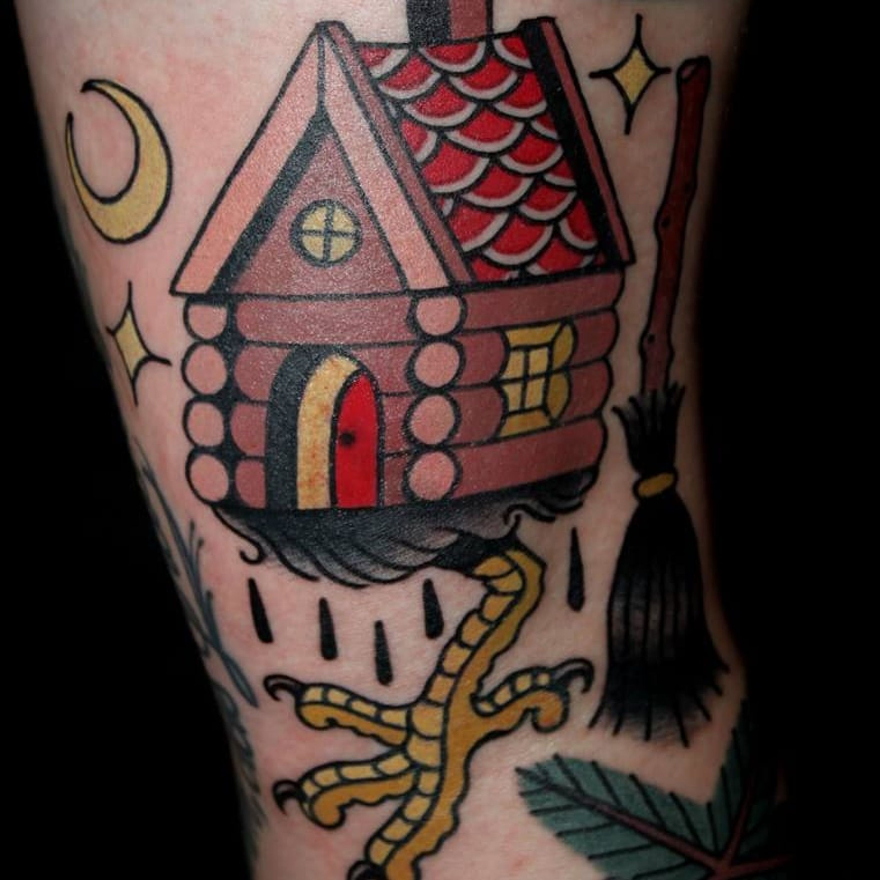 Hut tattoo by Sebastian Domaschke #babayaga #SebastianDomaschke #hut #witch