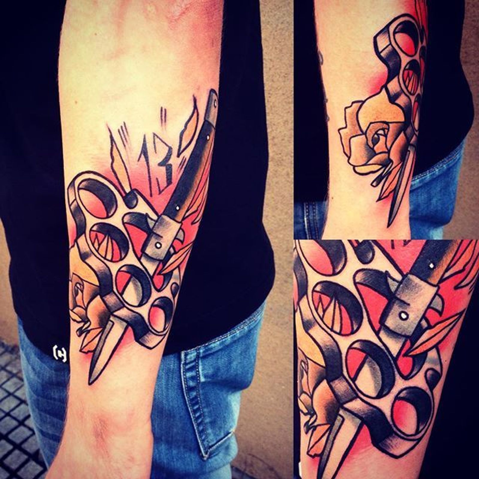 Knuckles Tattoo Combined with a Knife by Szymon Knefel #brassknuckles #weapontattoo #knuckles #SzymonKnefel