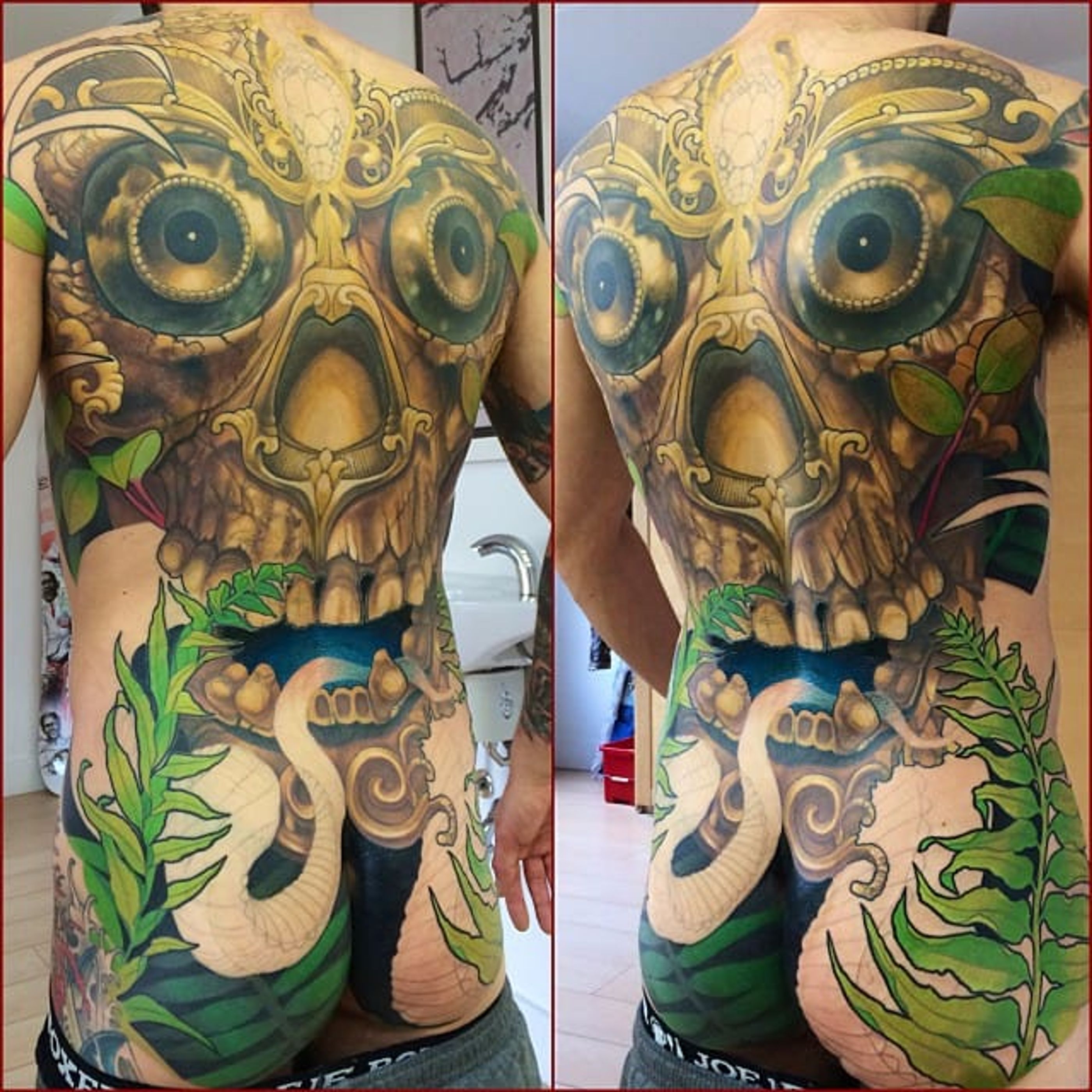 In Progress Back Tattoo by Steve Moore #back #backtattoo #backpiece #largetattoos #bigtattoos #SteveMoore