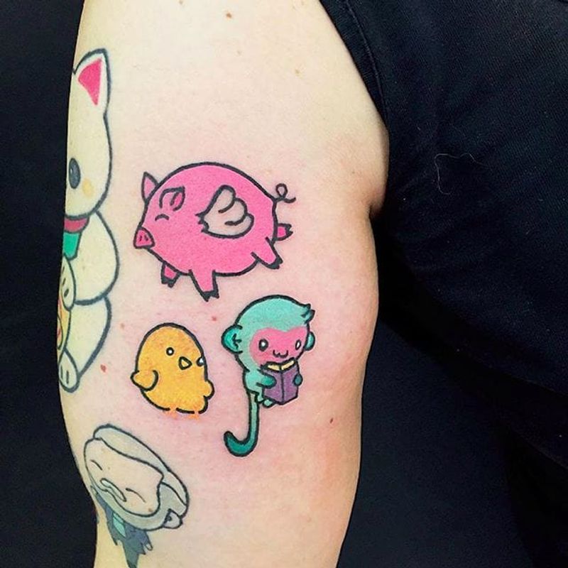 Cute little animal Tattoos by Maria Truczinski #MariaTruczinski #Cartoon #Kawaii #Cartoontattoo #Kawaiitattoo #animaltattoo