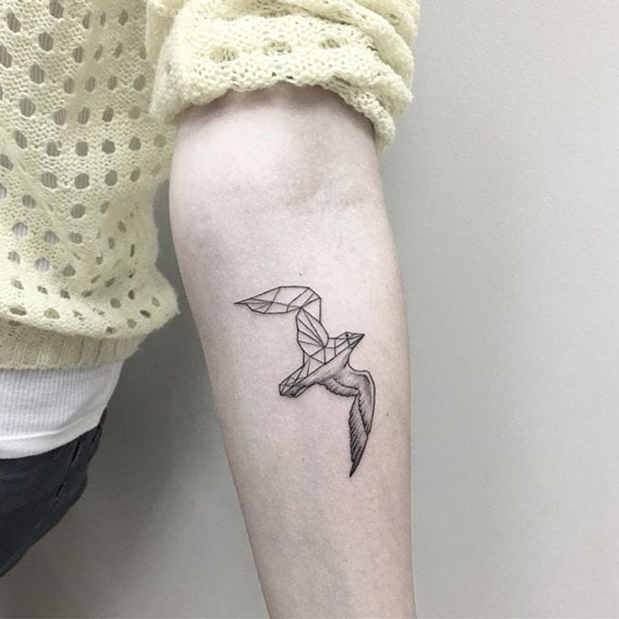 Geometric seagull tattoo by Julia Shpadyreva. #JuliaShpadyreva #blackwork #fineline #seagull #bird #geometric