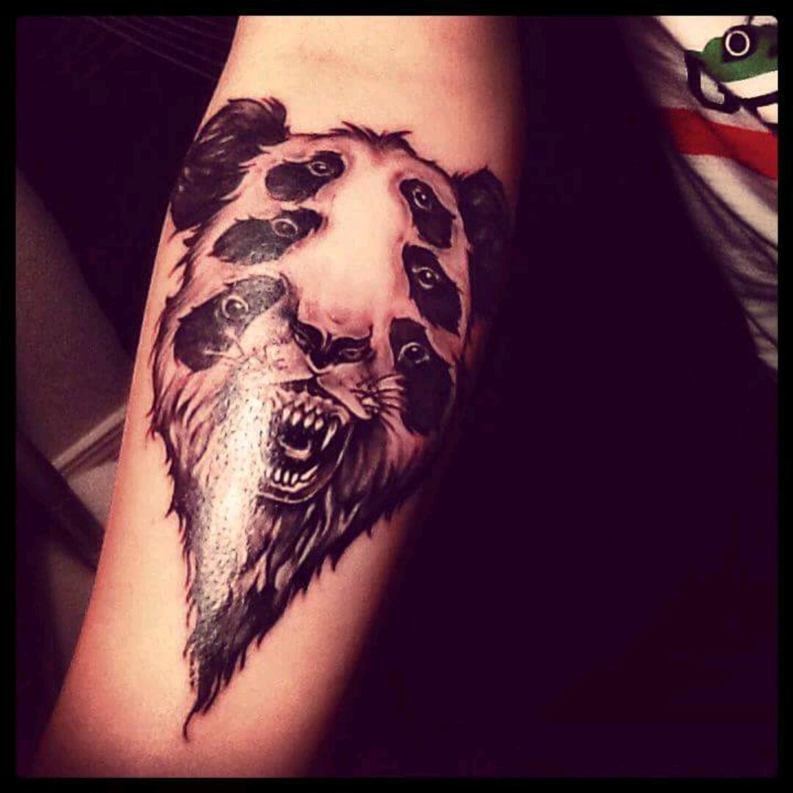 #Six #eyed #panda #sixeyedpanda #mutant #mutantpanda #linework #bear #pandabear #pandatattoo #moscow #untamedart Done by Hannah Quaglietta at Untamed Art in Moscow Idaho