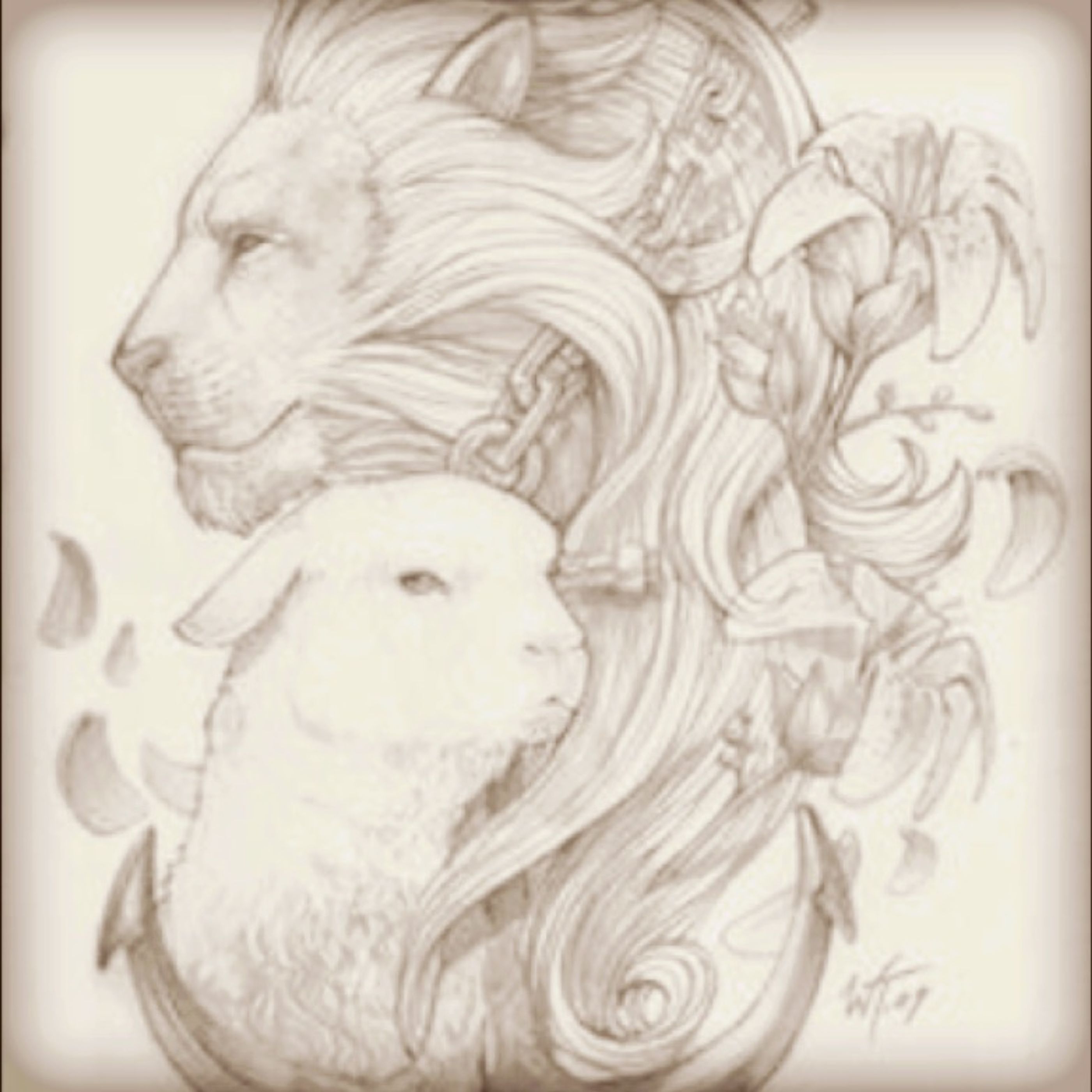I do want the lion, but i want, instead of a lamb, a tiger. On the otherside I want a bear and a wolf, with chains and vines lightly entwining them.