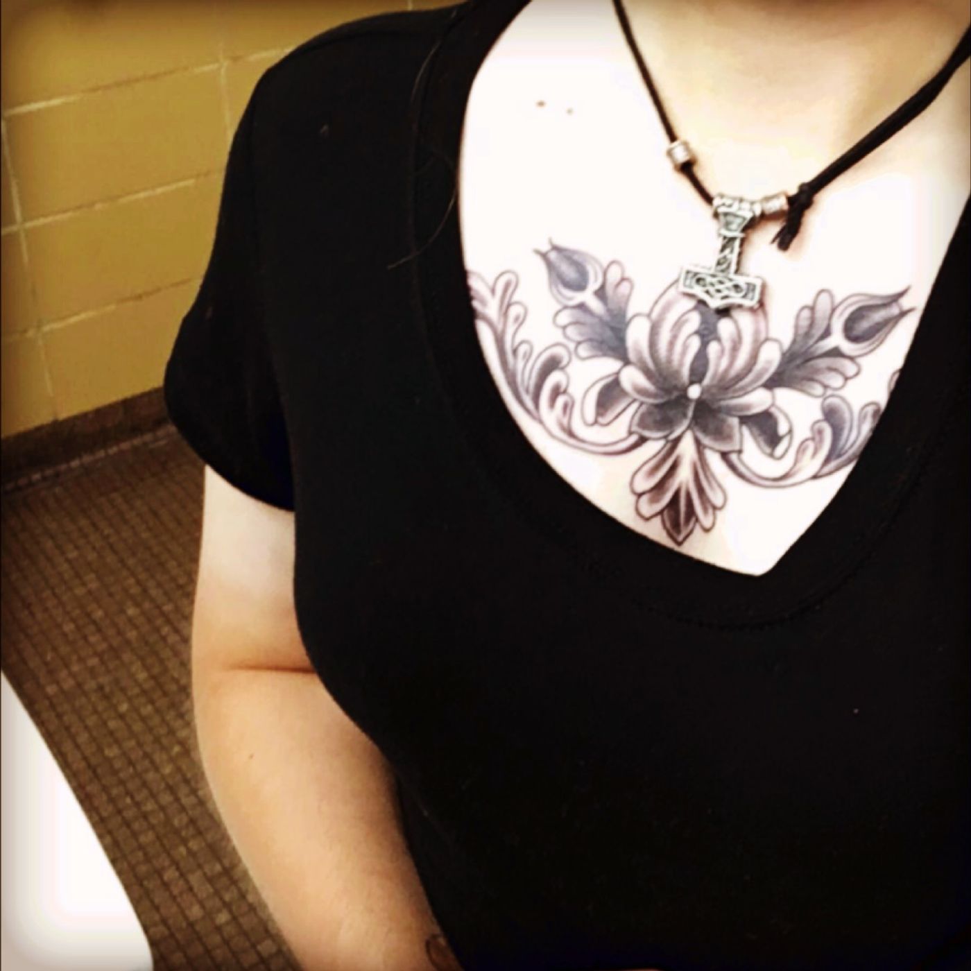 Norwegian rosemaling tattoo❤️ #norwegianrosemalling #norwegian #sternum #floral