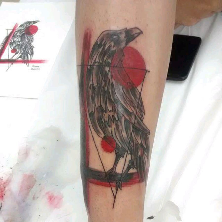 Corvo Artista: Amanda Barroso OCA Tattoo - Valinhos/SP #OcaTattoo #crow #trashart #redandblack