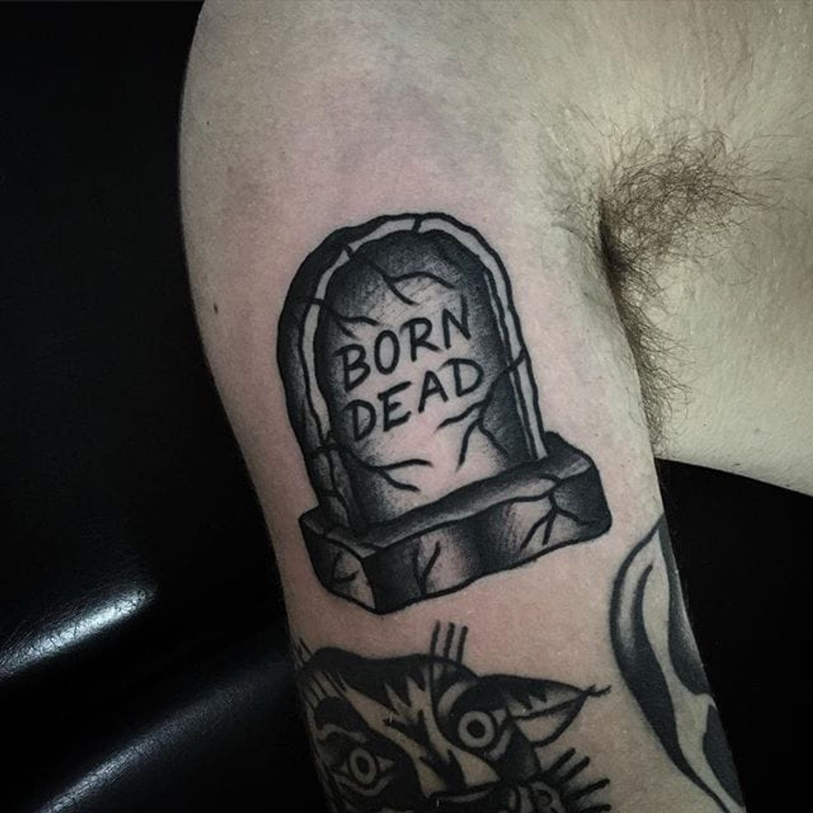 Gravestone Tattoo by Luca Polini #gravestone #gravestonetattoo #blackwork #blackink #blackworktattoo #blackworkrtist #LucaPolini