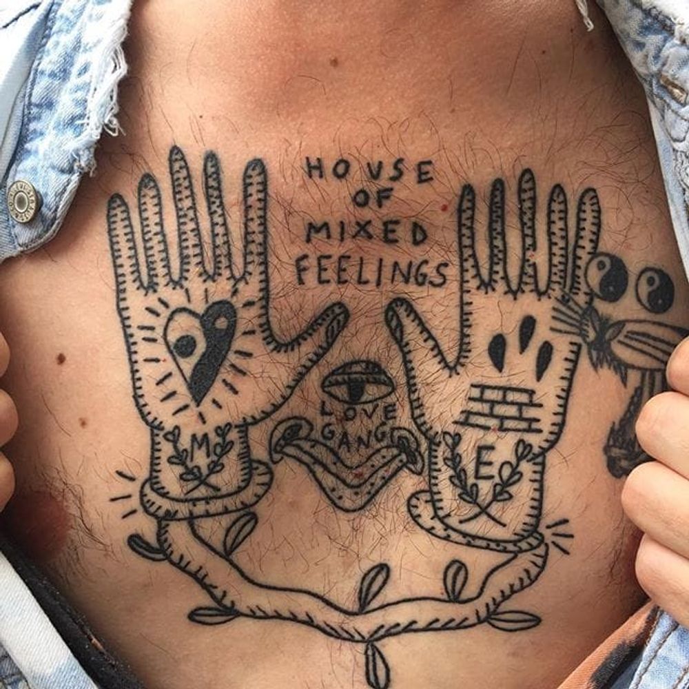 Chest tattoo by Francisca Silva #ignorantart #ignorantblackwork #ignorantstyle #ignorant #hands #yingyang #contemporary #minimalart #minimalism #blackwork #blckwrk #FranciscaSilva