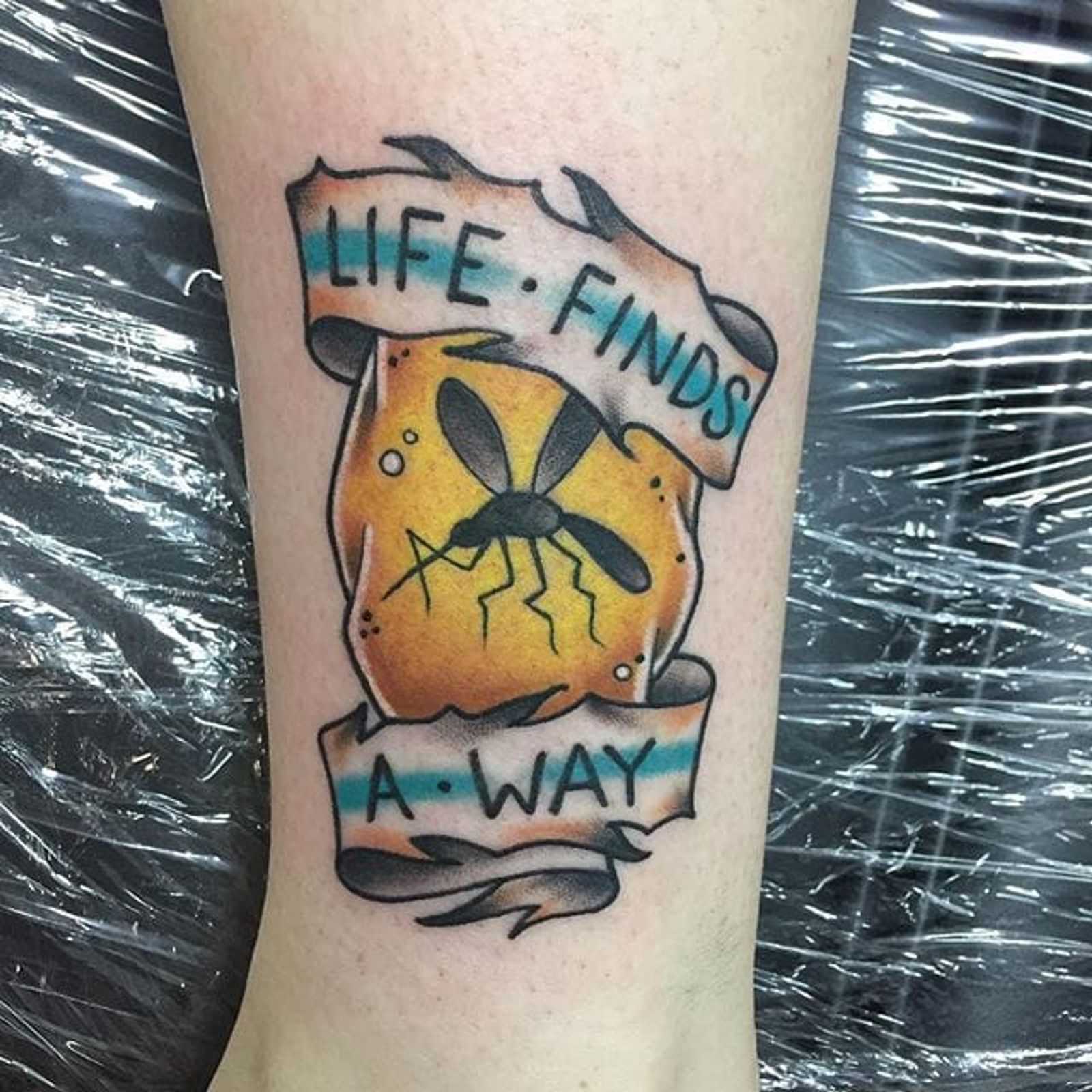 Amber Tattoo by Chris Bartlett #amber #ambertattoo #mosquito #mosquitotattoo #fossil #jurassicpark #jurassicparktattoo #ChrisBartlett