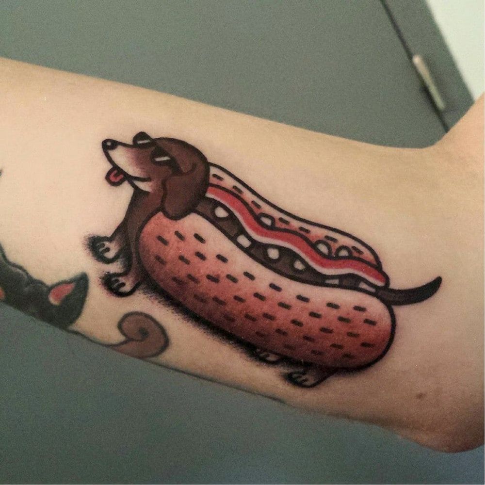 Hot dog tattoo by Rion #Rion #traditional #dog #hotdog