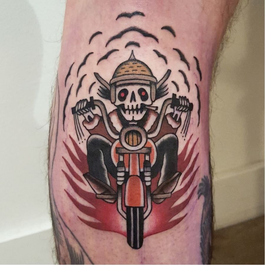 Biker tattoo by Rion #Rion #traditional #biker #skeleton