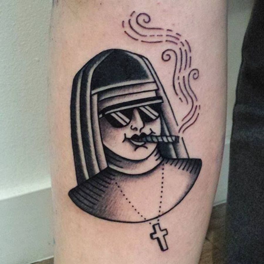 Swag nun tattoo by Rion #Rion #traditional #nun #swag