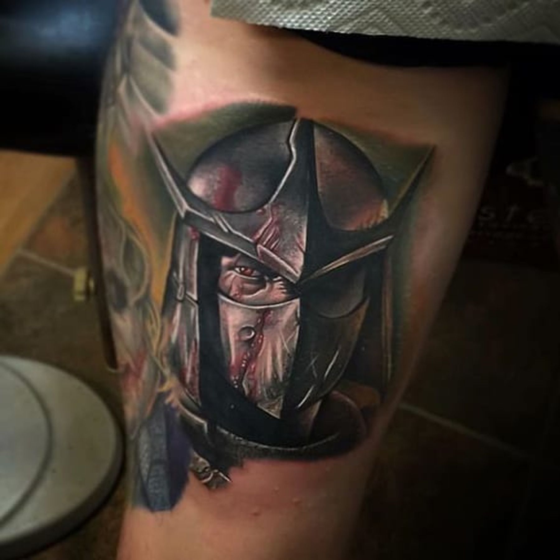 Shredder Portrait Tattoo by @pochtattoos #Shredder #TMNT #NinjaTurtles #Portrait #pochtattoos