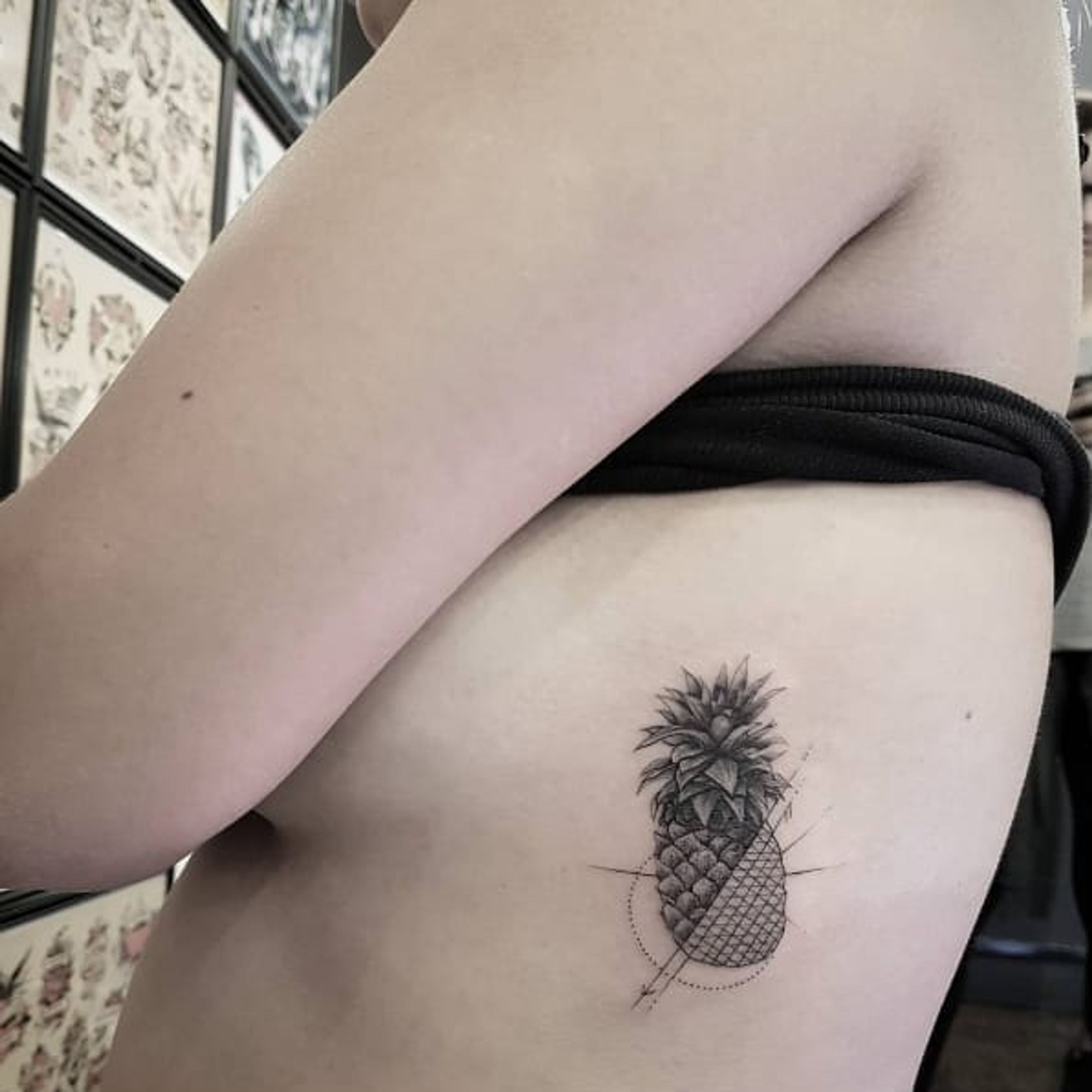 Awesome pineapple tattoo by Drag On #drag_on #dragtattoo #newyork #west4tattoo #linetattoo #lineworktattoo #pineappletattoo #pineapple