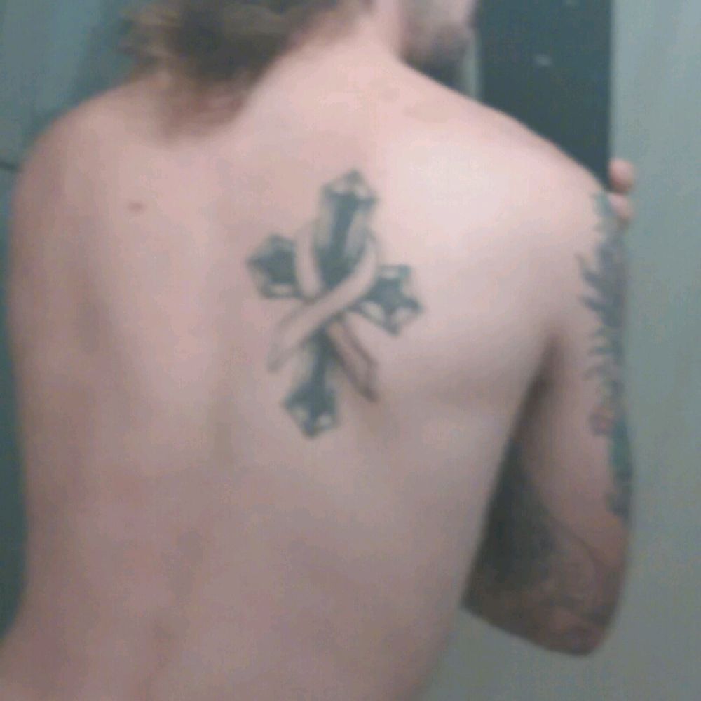 My first. Its faded. Its a pink ribbon and cross for my mom who had breast cancer.