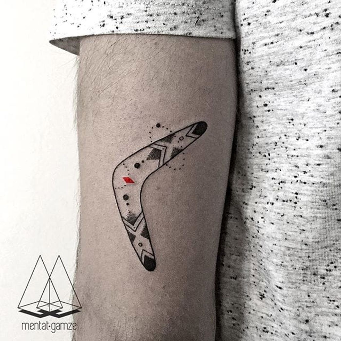 Micro boomerang tattoo. #MentatGamze #Turkish #Turkey #tattooartist #microtattoo #conceptual #geometric #red #boomerang