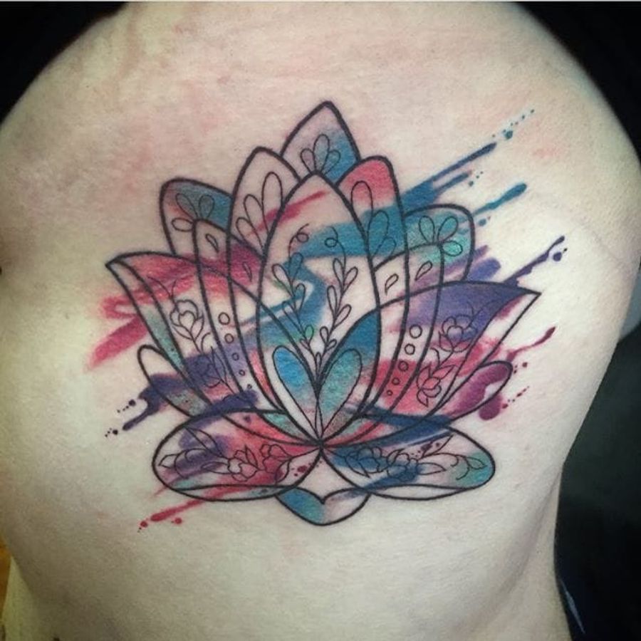 Watercolor lotus flower tattoo by Samantha Vail. #watercolor #lotus #flower #SamanthaVail