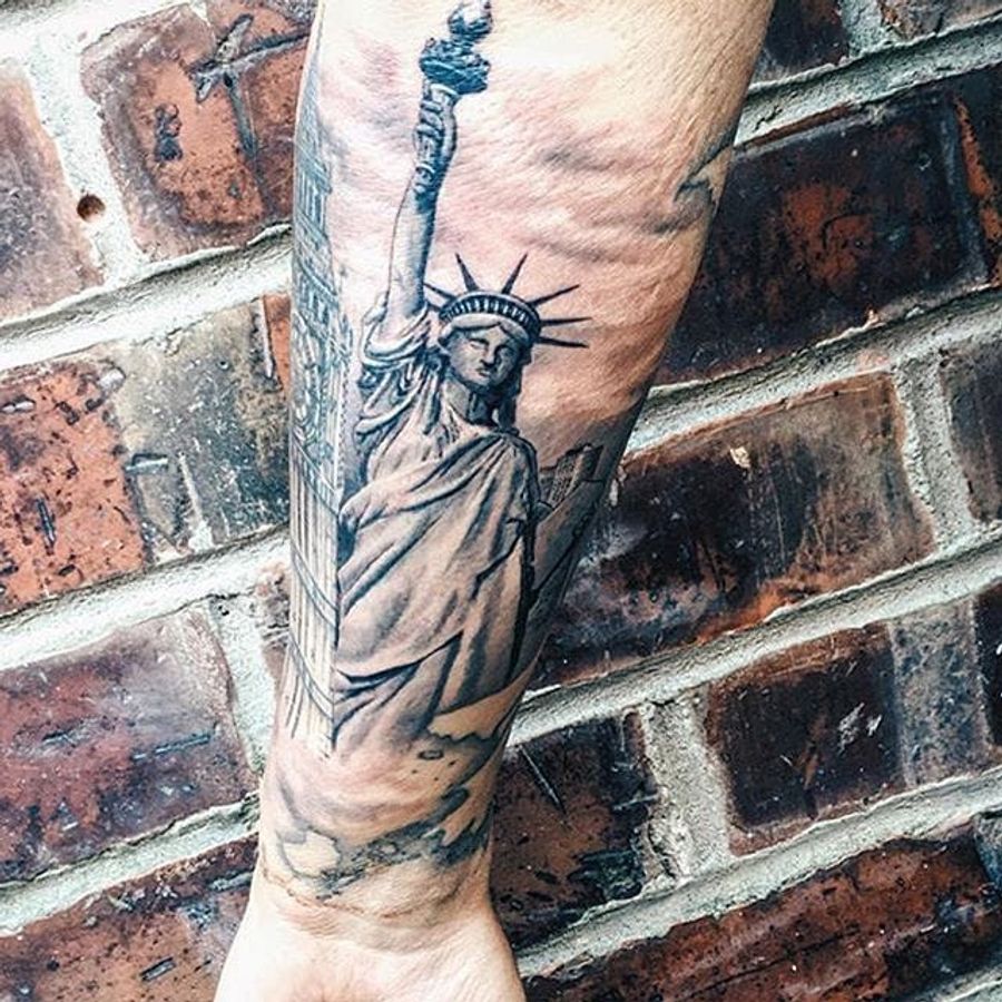 Black and grey realistic rendering of the Statue of Liberty by Luke Catleugh. #realism #blackandgrey #statueofliberty #newyork #NY #statue #LukeCatleugh